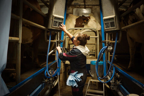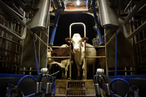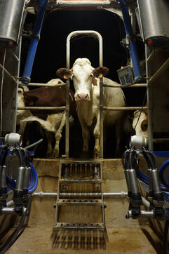 Milking time on an organic dairy farm
