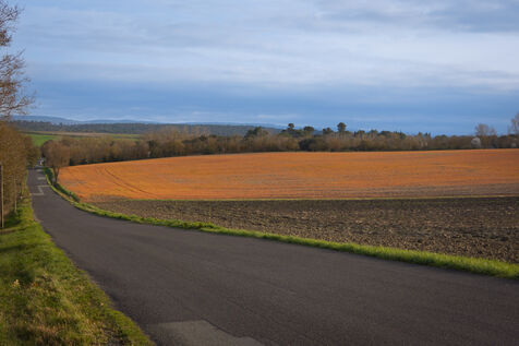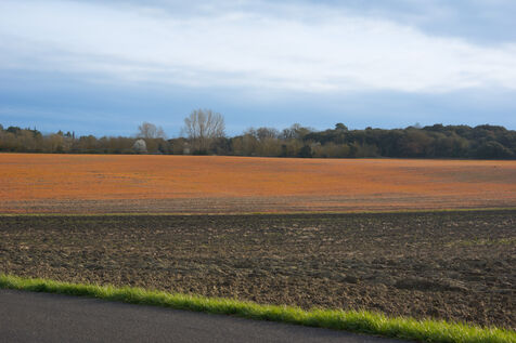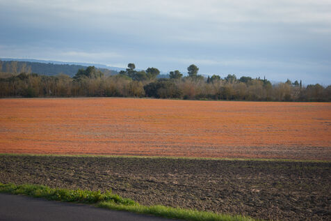 Sur les routes du village de Bram, le champ agricole d'un agriculteur est devenu orange, brûlé par l'herbicide glyphosate.