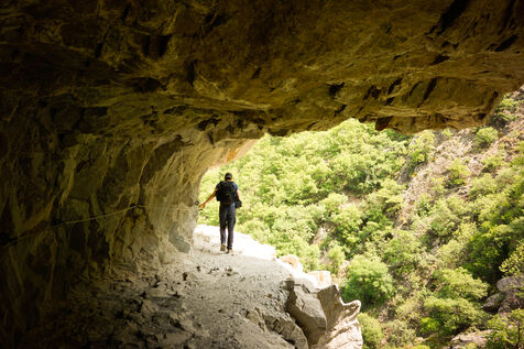 The main trail, known as the ‘vertigo route’, runs along the rock faces of the cliffs, overlooking a rushing torrent. It alternates between narrow ledges, metal footbridges, suspension bridges and monkey bridges, offering an immersive and spectacular experience.
