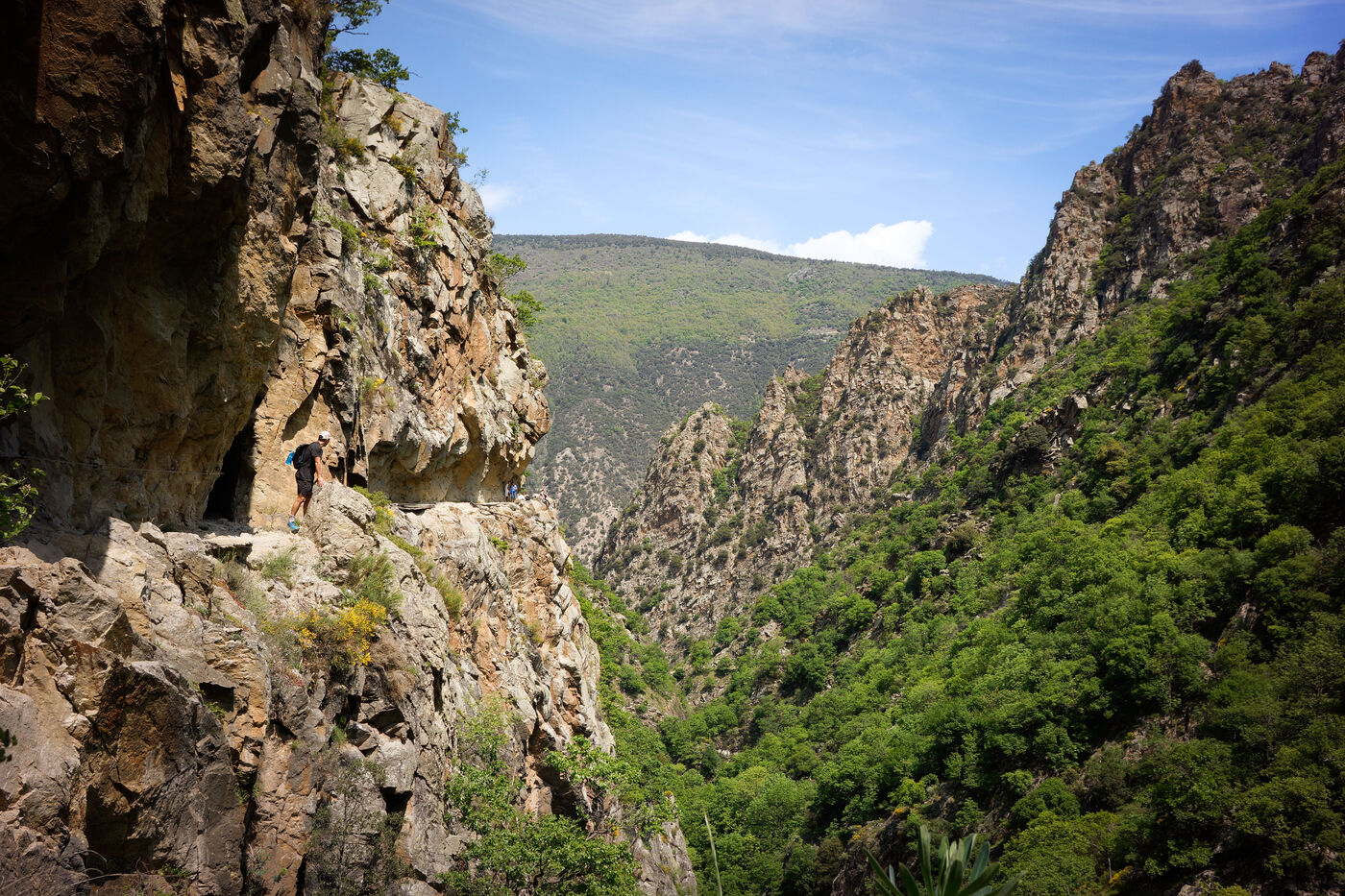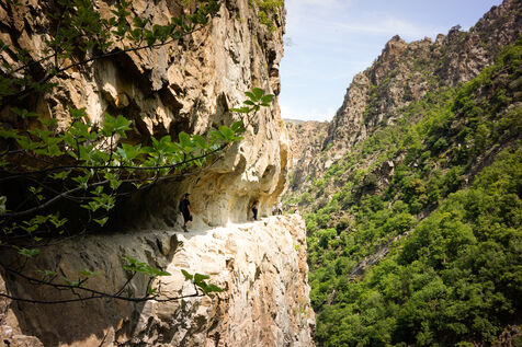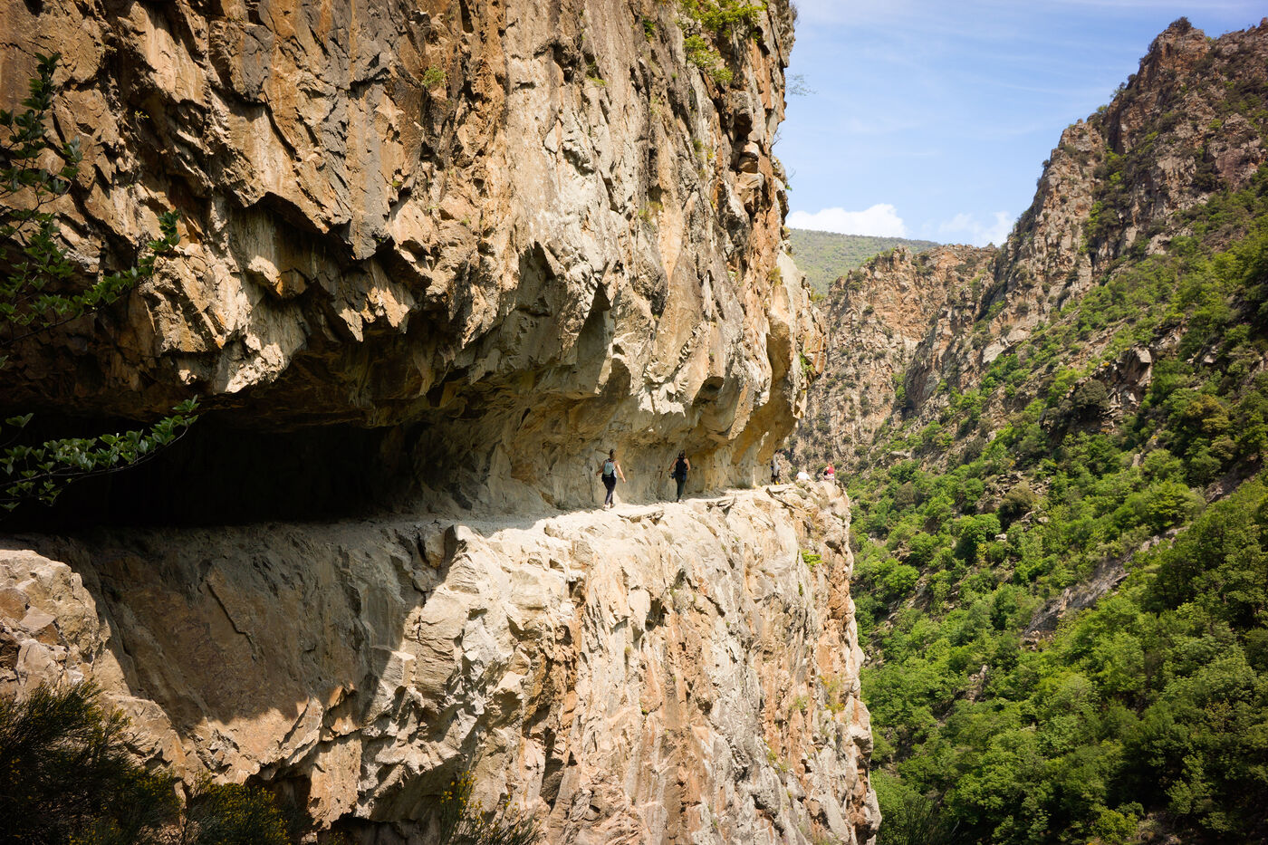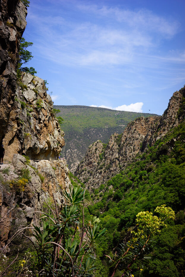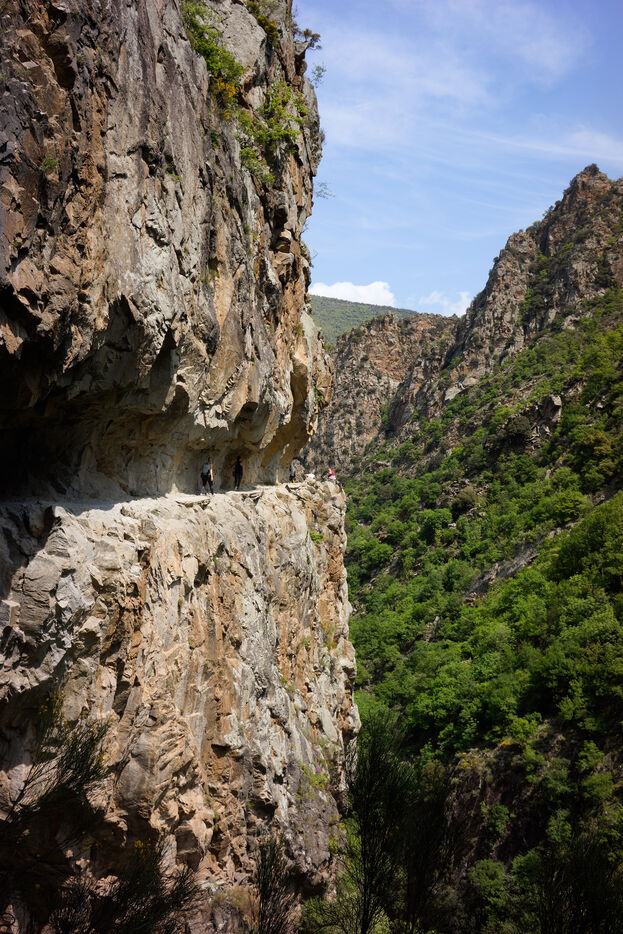 Carved out in 1943 to provide access to the water catchment site for the Thuès hydroelectric plant, the historic corniche is a testament to human ingenuity in an extreme environment. Today, it provides access to a deep canyon carved out of the rock, where lush, almost tropical vegetation flourishes in contrast to the harshness of the rock.