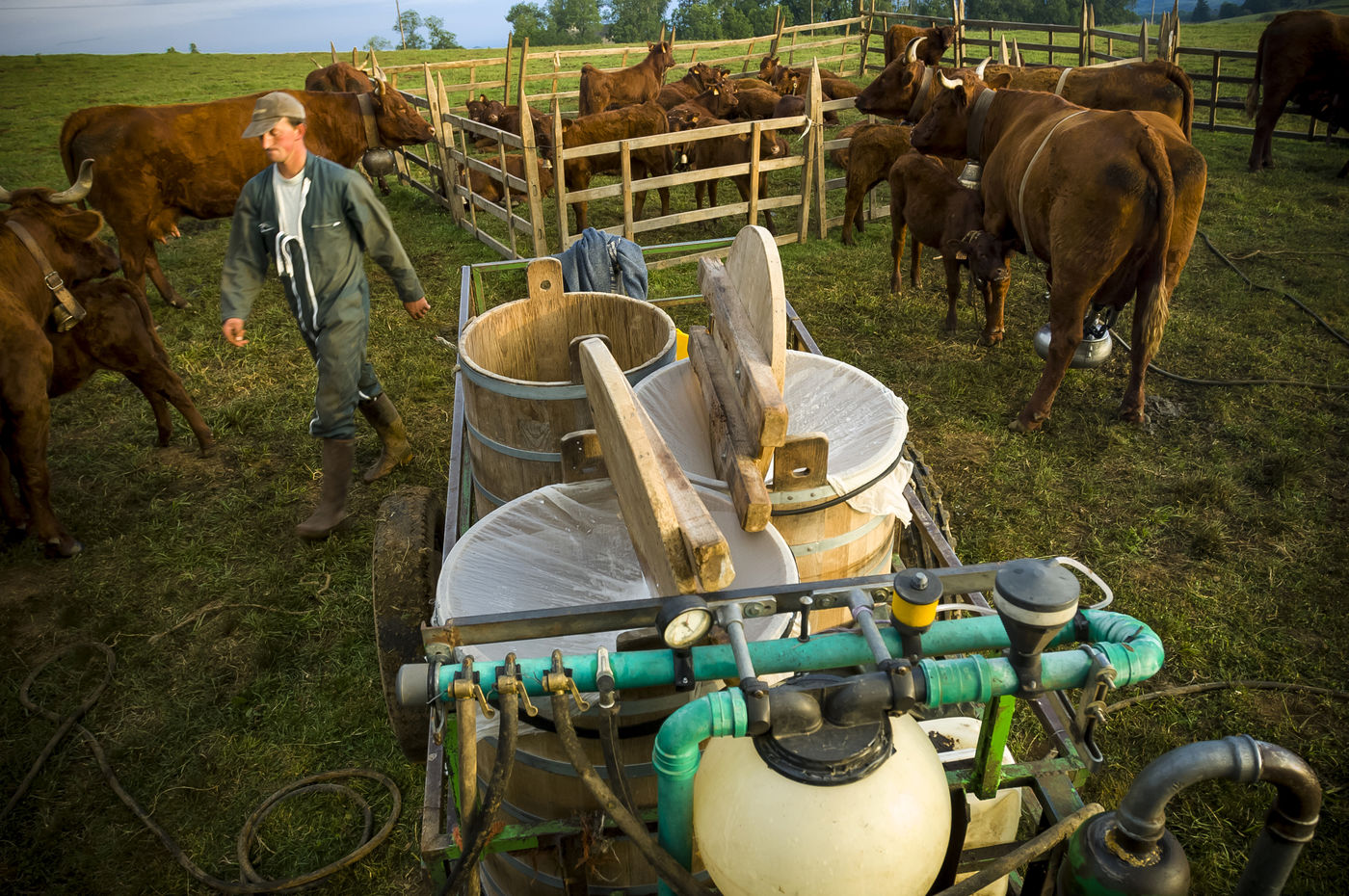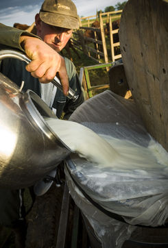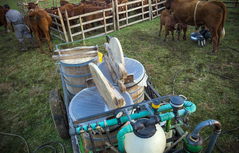Pour sa fabrication il faut avant tout dompter cette vache rustique et caractérielle qui ne donne du lait qu'en présence de son veau.