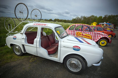 Anciennes voitures publicitaires de la caravane du Tour de France.