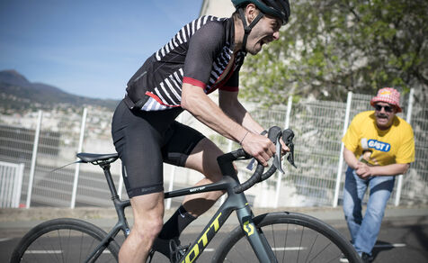 "La Montee Infernale 2024". The shortest bike race ever organized, with a 200 m climb, 20% of which is in the last 20 m. A crazy, family-friendly solo time trial organized by the Clermont-Ferrand neighborhood association Fluide Glacière.