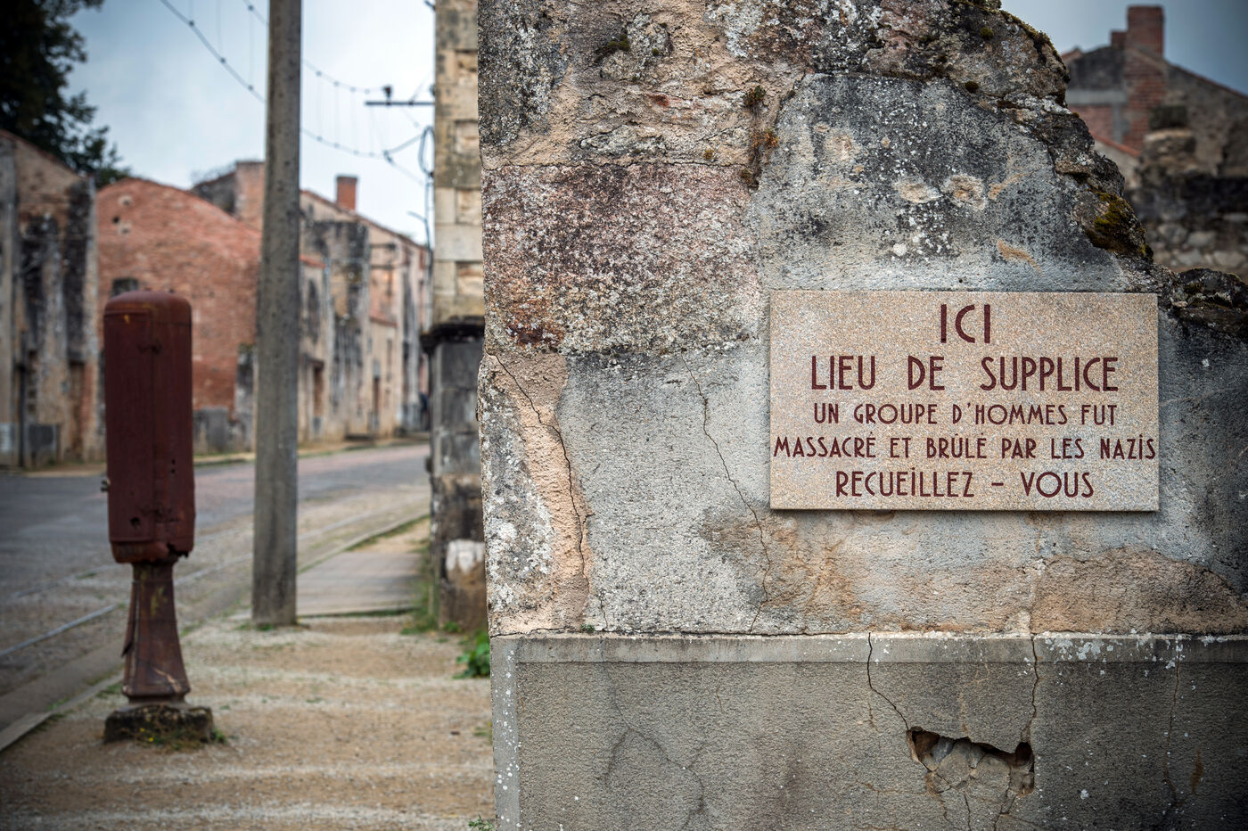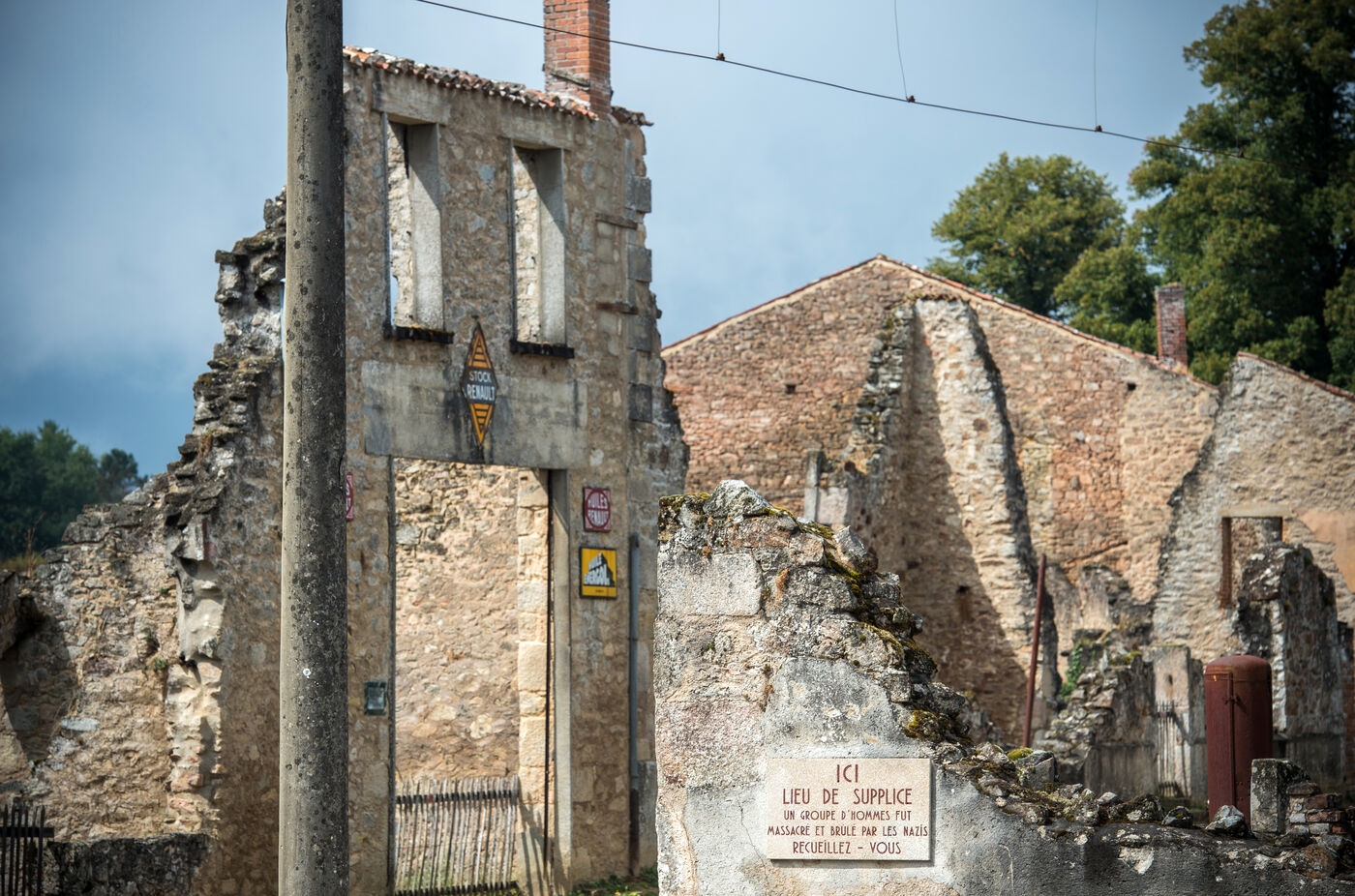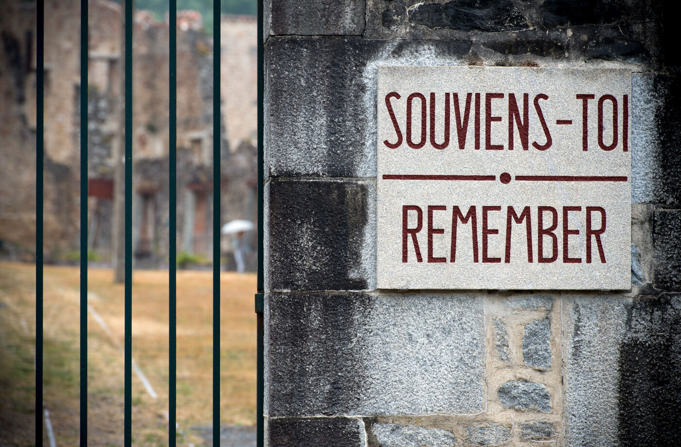 Anniversaire des 80 ans du massacre d'Oradour sur Glane perpétré le 10 juin 1944 par la division Das Reich. Le temps s'est arrété sur les ruines du village martyr du plus grand massacre de civils commis en France par les nazis, 642 victimes.