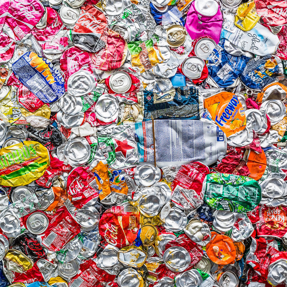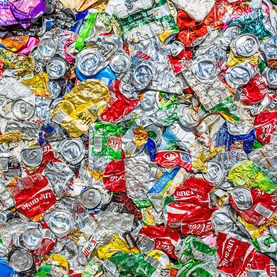 Interrogation sur notre vision de l'environnement, de l'écologie, du consumérisme, cette série d'images de balles d'aluminium compactées issues du centre de tri de l'ARC IRIS, complexe du SYDETOM66, à Calce, nous montre ce que nous produisons le plus au quotidien : des déchets.