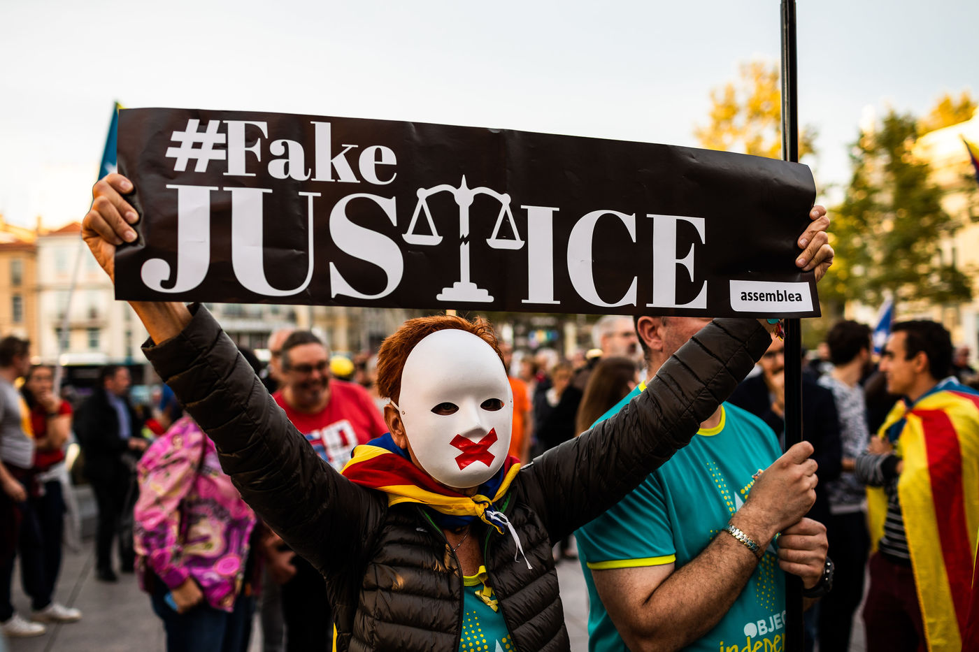 Perpignan, 19 octobre 2019, Rassemblement contre la condamnation des prisonniers politiques catalans, condamnés lundi 14 octobre à des sentences allant jusqu'à 13 ans de prison ferme.