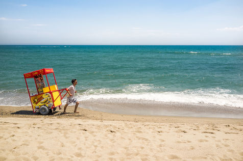 Ambiance et activités estivales, en bord de plage, bar ou camping de la côte des Pyrénées-Orientales, au bord de la Méditerranée.