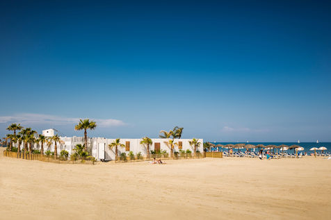 Summer atmosphere and activities, on the beach, bar or campsite of the Pyrenees-Orientales coast, by the Mediterranean Sea.