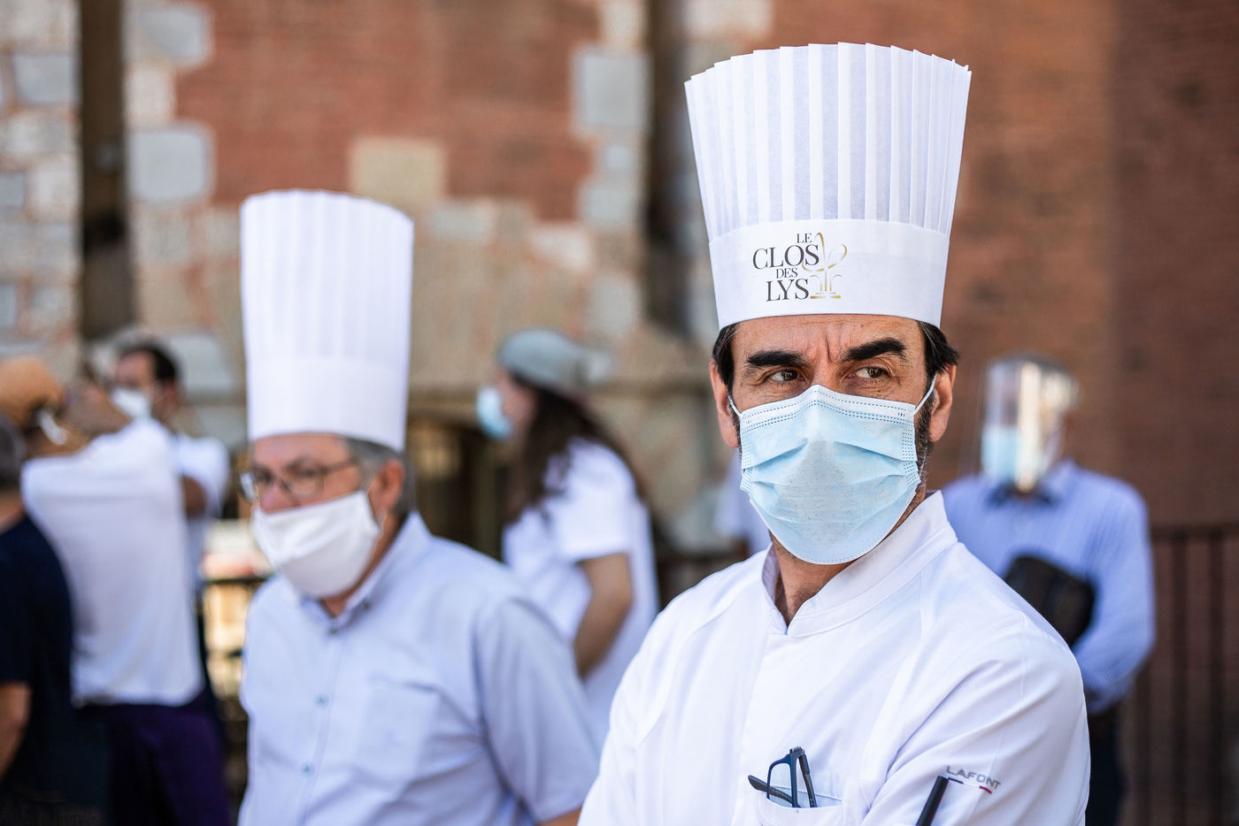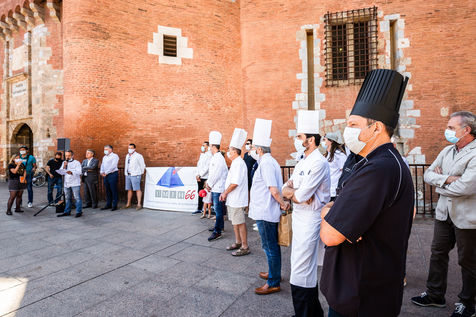Dépot de vestes et de toques symbolique, devant le Castillet, pour protester contre le manque d'écoute du gouvernement, le manque d'aide et la repousse de leur date officiel de rouverture à la suite du confinement et de la pandémie de CoVid19.