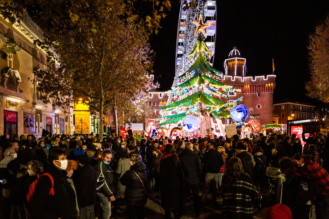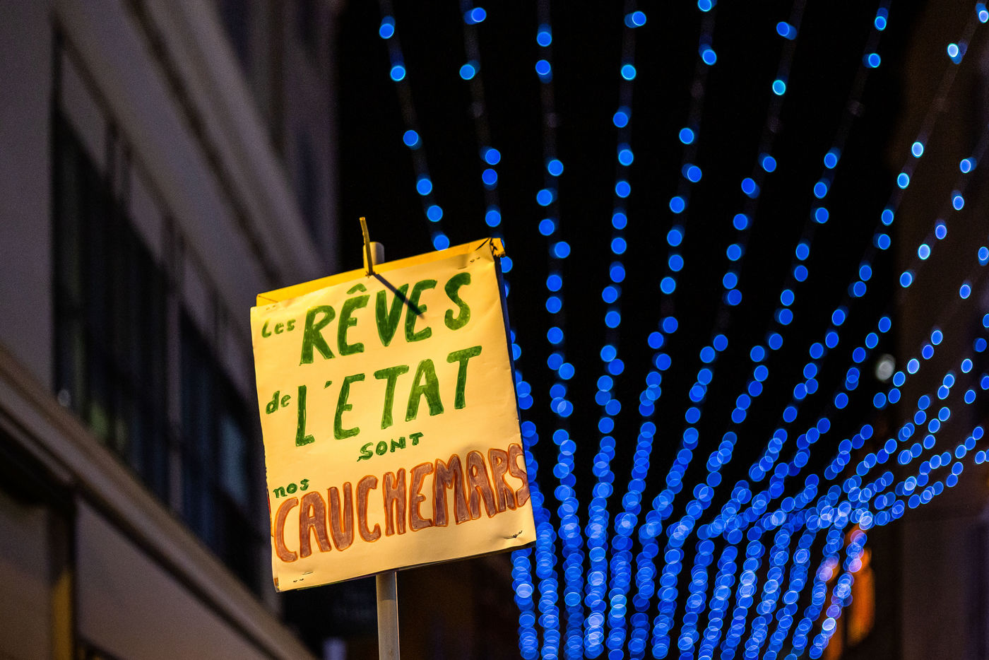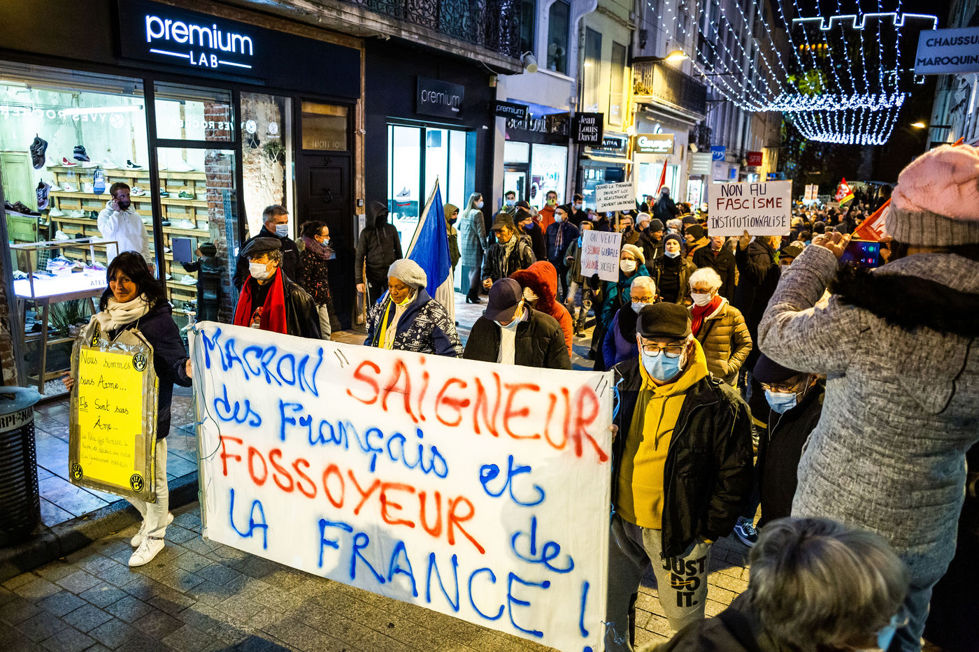 Perpignan, 3 décembre 2020, manifestation contre le projet de loi de sécurité globale, à l'initiative de nombreuses association et forces politiques locales, notamment d'extrème gauche.