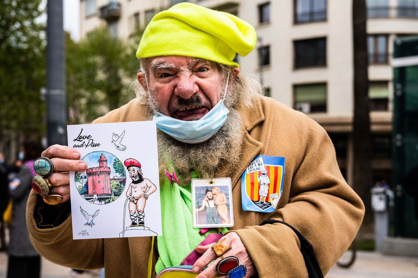 Perpignan, 10 avril 2021, manifestation contre le nouveau nom et logo de la ville de Perpignan, Perpignan La Rayonnante et la suppression de son suffixe La Catalane. Décision du Maire de Perpignan Louis Aliot et son service de communication.