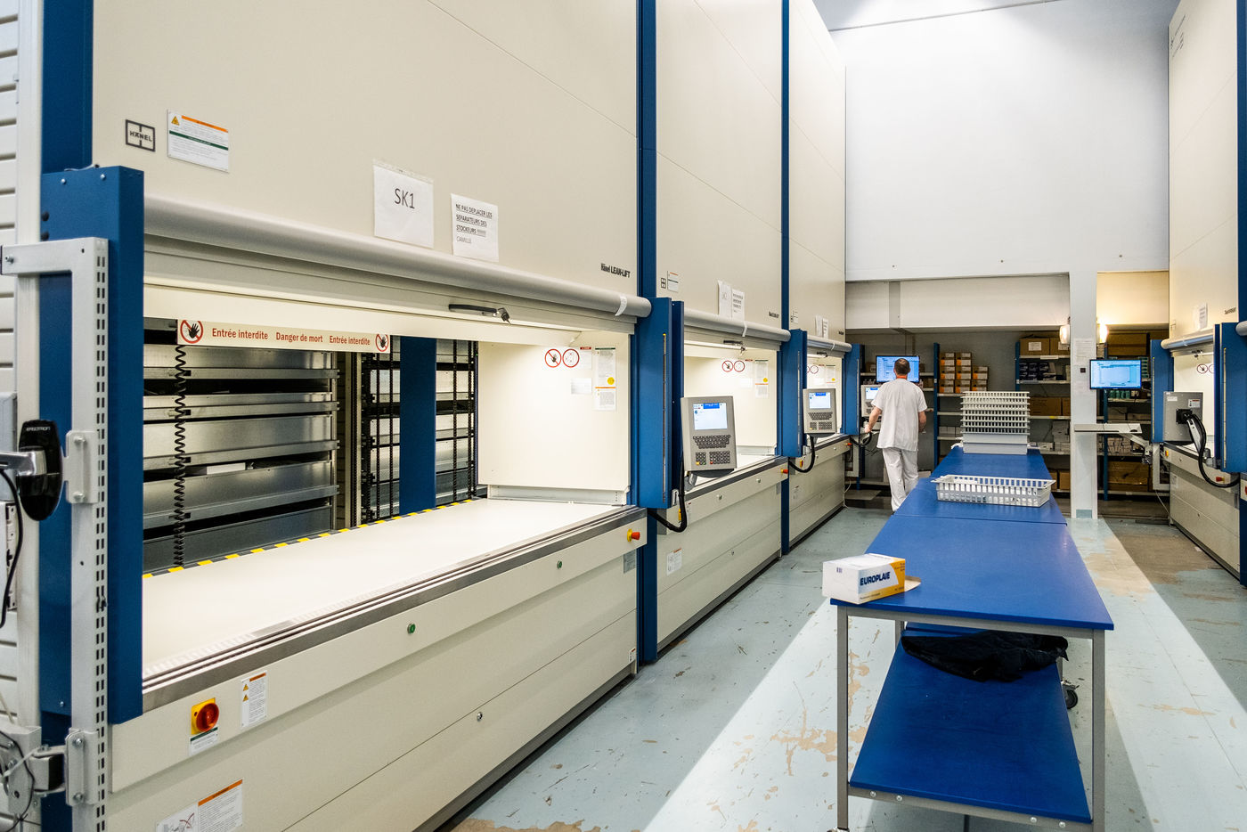 Perpignan, 12 avril 2021, La Pharmacie de l'Hopital de Perpignan stocke, conditionne, prépare et distribue les vaccins contre le Covid, notamment Pfizer et Moderna. S'ils sont à destination de près de 130 sites de vaccination, le plus gros consommateur de ces doses est actuellement le vaccinodrome de la ville. Un nouveau centre de vaccination organisé par l'ARS, le SDIS66, et l'Hopital de Perpignan, qui vaccine environ 1200 personnes par jour, en espérant atteindre les 2000 d'ici fin avril.