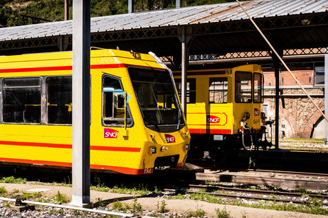 Course in Conflent and Cerdanya, under the sunshine, of the famous Yellow Train, TER SNCF Catalan Pyrenees.
