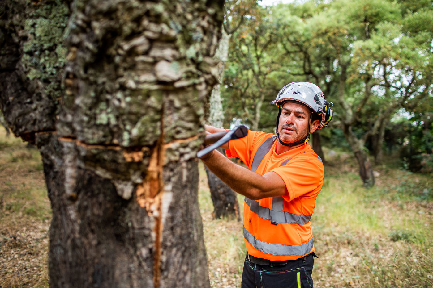 Montesquieu des Albères, summer 2021, training organized by the Mediterranean Institute of the Cork and Diam Bouchage (producer of cork stopper) on the mechanized lifting of cork.