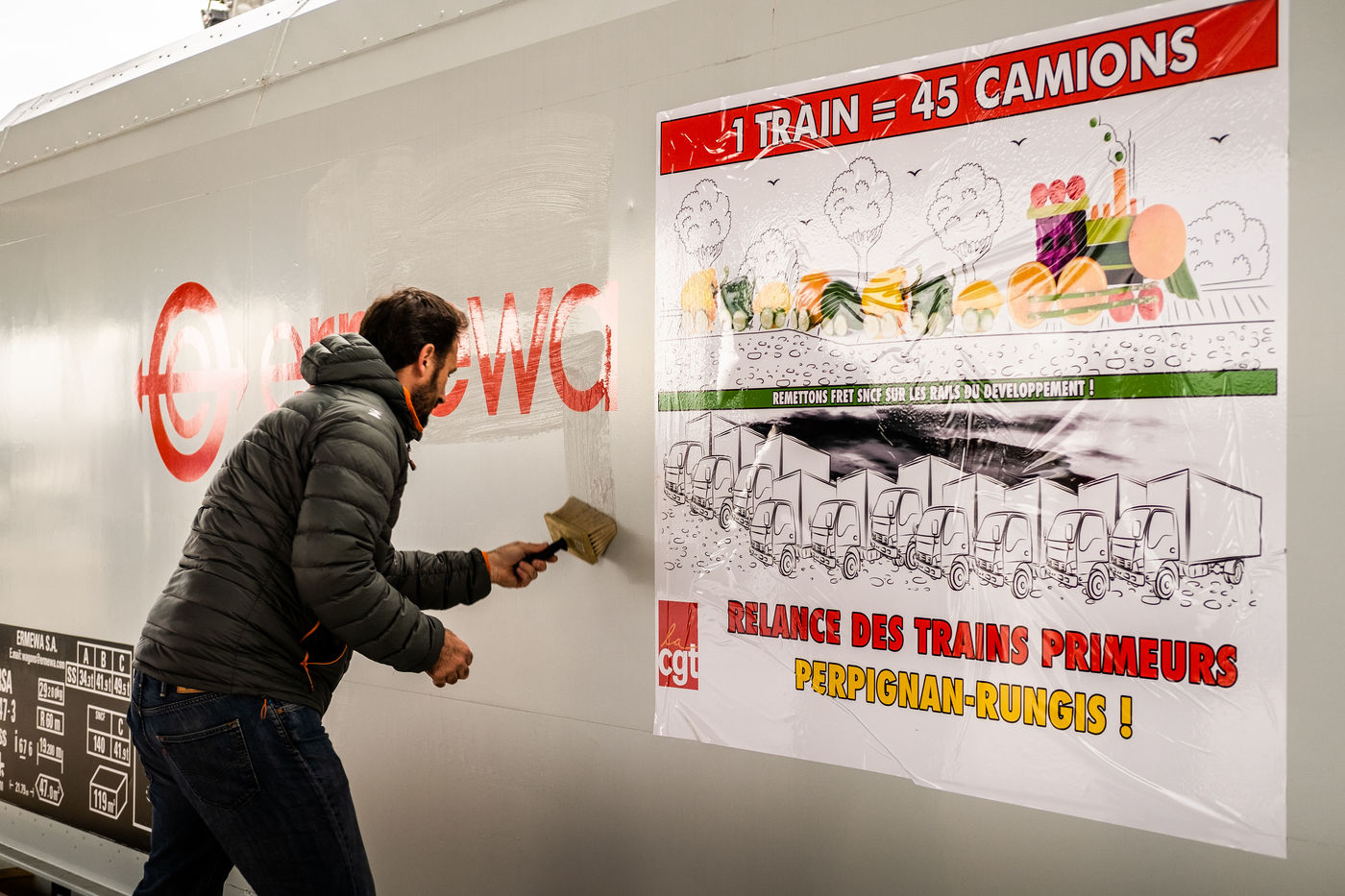 Perpignan, Marché Saint Charles, 21 October 2021, CGT inauguration of the return of the Perpignan-Rungis train.