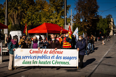 Montpellier, 17 novembre 2021, grève et manifestation des cheminots CGT de la gare Saint Roch à la préfecture de région.