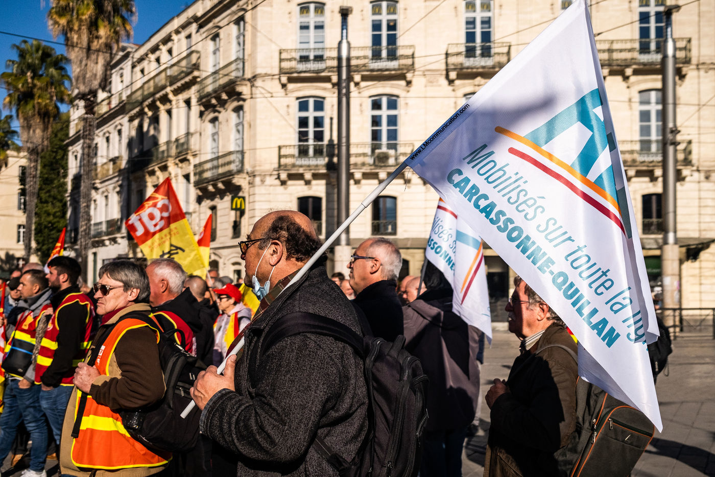 Montpellier, November 17, 2021, strike and demonstration of the CGT railway workers from the Saint Roch station to the regional prefecture.