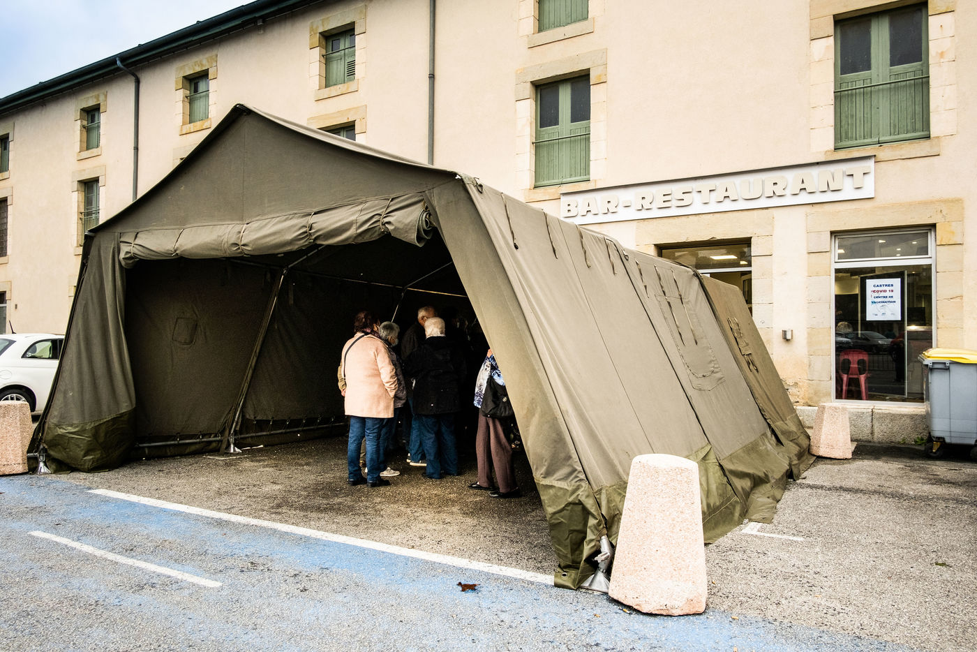 Castres, 7 décembre 2021, vaccinodrome départemental, dans un des départements les plus vaccinés chez les 65 ans et plus, la campagne de rappel ou 3eme dose de vaccin se poursuit malgré un nombre de place largement inférieur aux attentes de la population et bien inférieure aux moyens mis en place lors des campagnes des 1ere et 2eme dose de vaccins pfizer comme moderna.