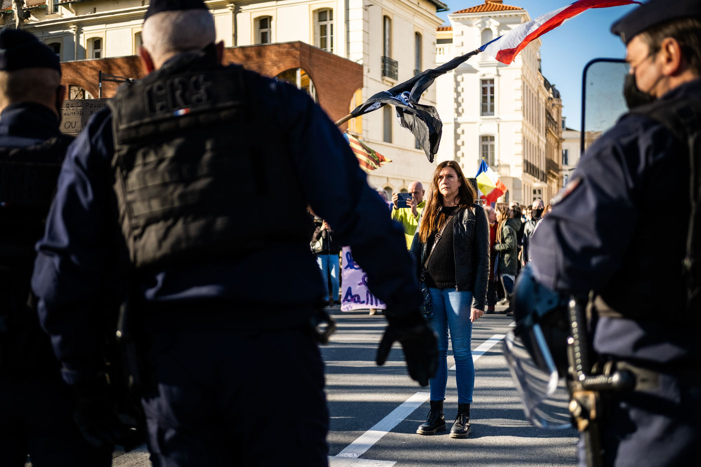 Perpignan, 29 janvier 2022, Manifestation Anti Pass Vaccinal hebdomadaire bloquée par une compagnie de CRS envoyé par la préfecture pour les empêcher d'accéder au Tribunal de la commune où comparaissent 3 manifestants ayant agressé le député Romain Grau lors de la manifestation de la semaine précédente...