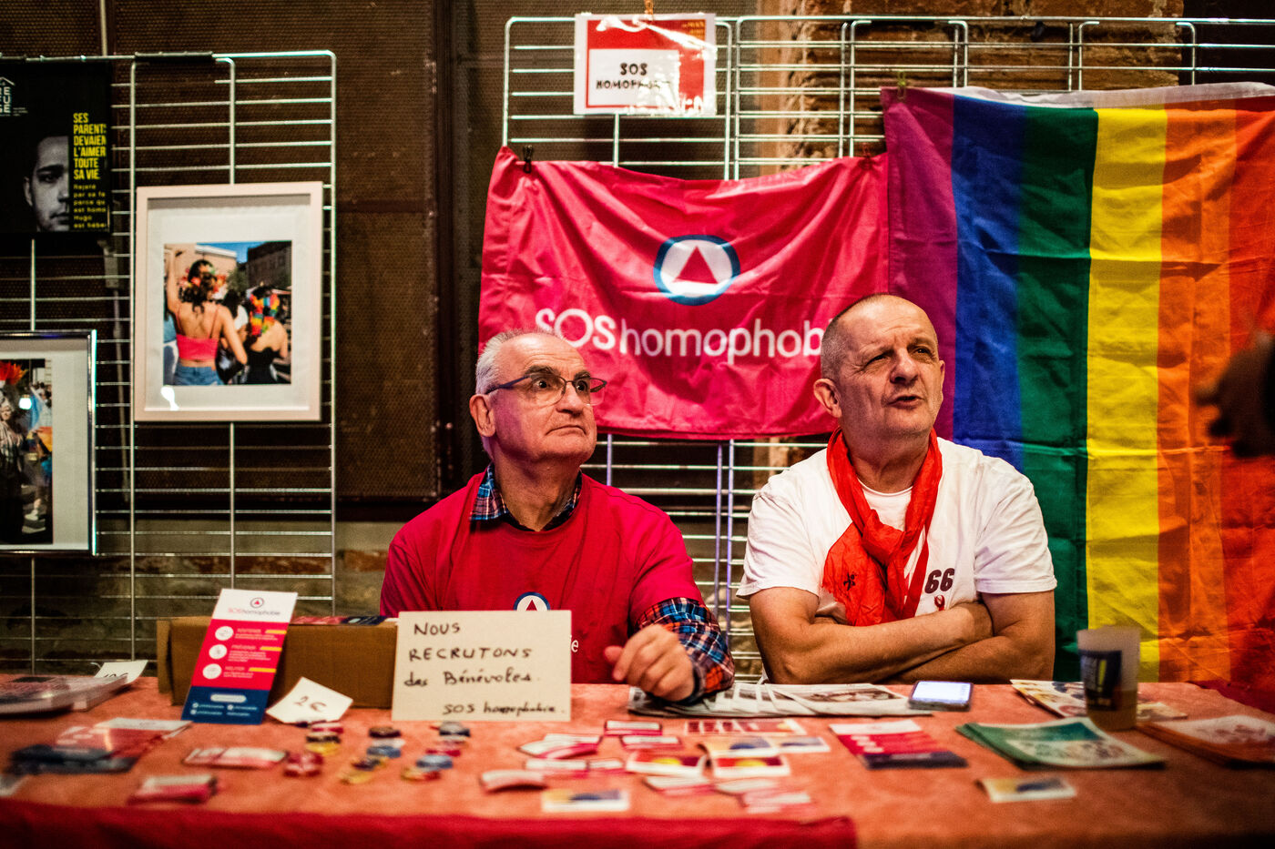 With volunteers from SOS Racisme, SOS homophobie, LGBT+66, the sisters of perpetual indulgence, AIDES...
