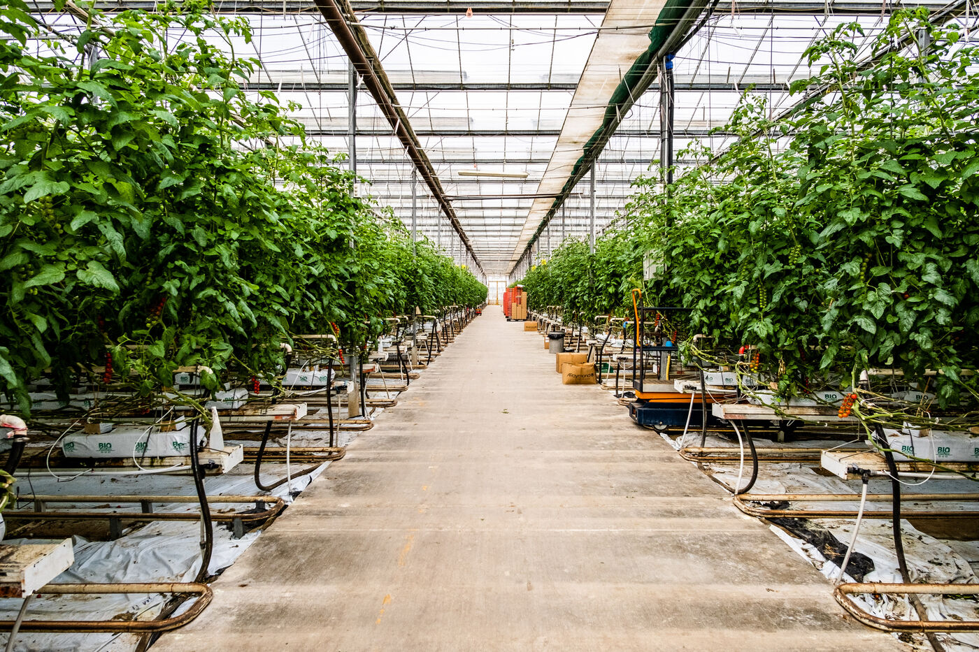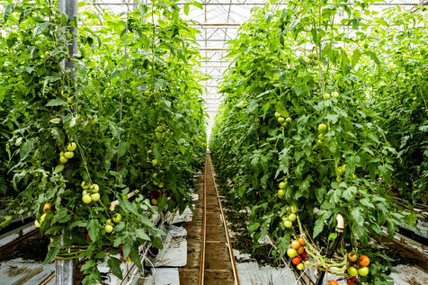 Saint Cyprien, janvier 2023, coopérative Sud Roussillon, de Bruno Vila, producteur de tomate hors-sol, sous serres chauffées et mécanisées. Plantation de 10 hectares de tomates grappes, bio, en production continue sur toute l'année.