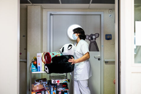 Perpignan, February 1, 2023, distribution of gifts by the superheroes of the association JoaJoie, in the pediatric ward of the hospital of Perpignan.