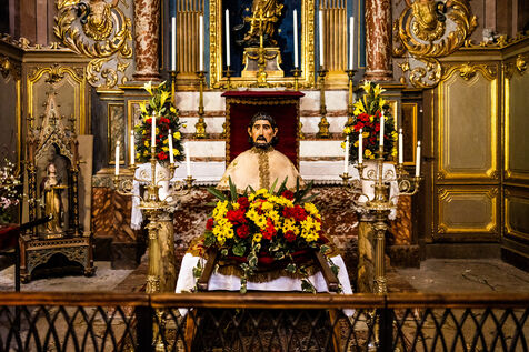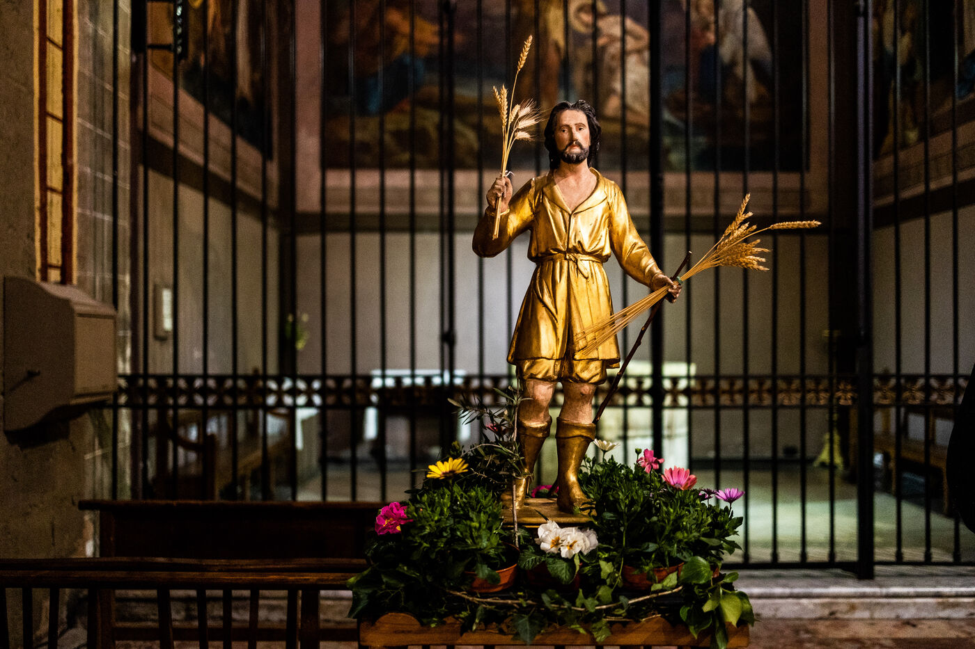 Transport of the statue of Saint-Gaudérique from the church of Saint-Hippolyte and the reliquary bust from the parish of Saint-Jacques to the banks of the Têt.