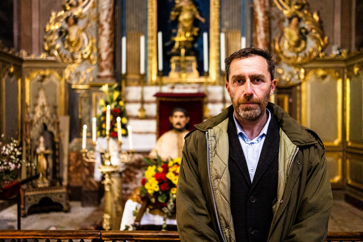 Perpignan, 18 mars 2023, procession religieuse pour implorer la pluie, organisée par le diocèse de Perpignan, à la demande d'un viticulteur, Georges Puig, touché comme tous les agriculteurs par la secheresse en cours dans le département des Pyrénées Orientales.