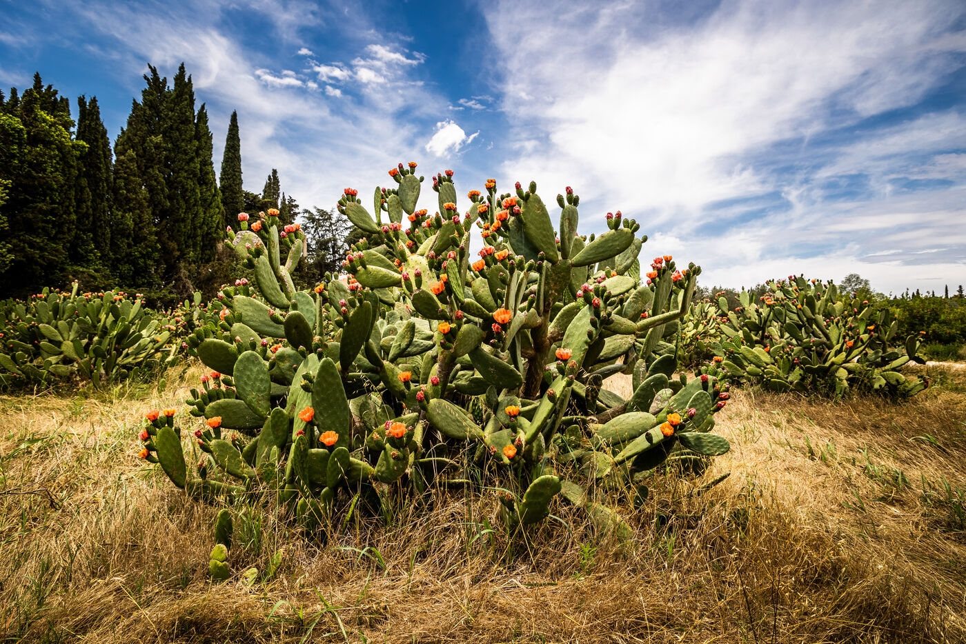 Argelès sur Mer, Domaine de la Mer Blanche, 8 juin 2023, afin de faire face au changement climatique, à la secheresse en cours dans les Pyrénées-Orientales et dans une démarche d'agroforesterie bio et environnementale, le domaine arboricole de Frederic Bey, s'est spécialisé dans les figuiers de barbarie, grenade, et agrumes. Fruits vendus à la pièce ou transformés en liqueur, jus et confiture.