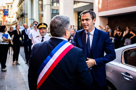 Perpignan, September 29, 2023, Mr. Olivier Véran, Minister Delegate for Democratic Renewal and Government Spokesman, visits the University of Perpignan to take part in a debate with law students.