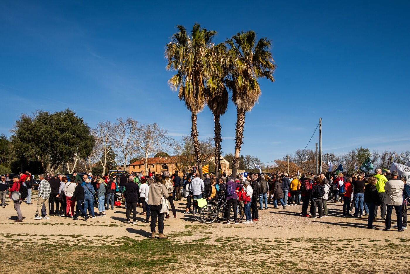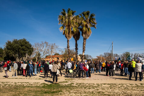 Villeneuve de la Raho, 16 mars 2024, manifestation contre le projet de golf et complexe immobilier de la commune de Villeneuve de la Raho, a proximite du Lac de la Raho.