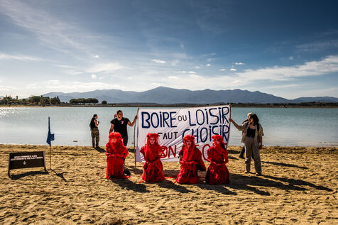 The protest was led by environmental activists from the Pyrénées-Orientales region, who criticize the project for being ill-advised in a department severely affected by a cruel lack of water and a historic winter drought.