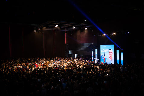 Perpignan, 1 May 2024, As part of its campaign for the European elections on 9 June 2024, the Rassemblement National led by Jordan Bardella and Marine Le Pen is holding its meeting in Perpignan, the home town of Louis Aliot, the city's RN mayor.