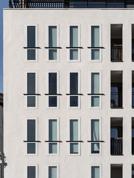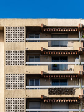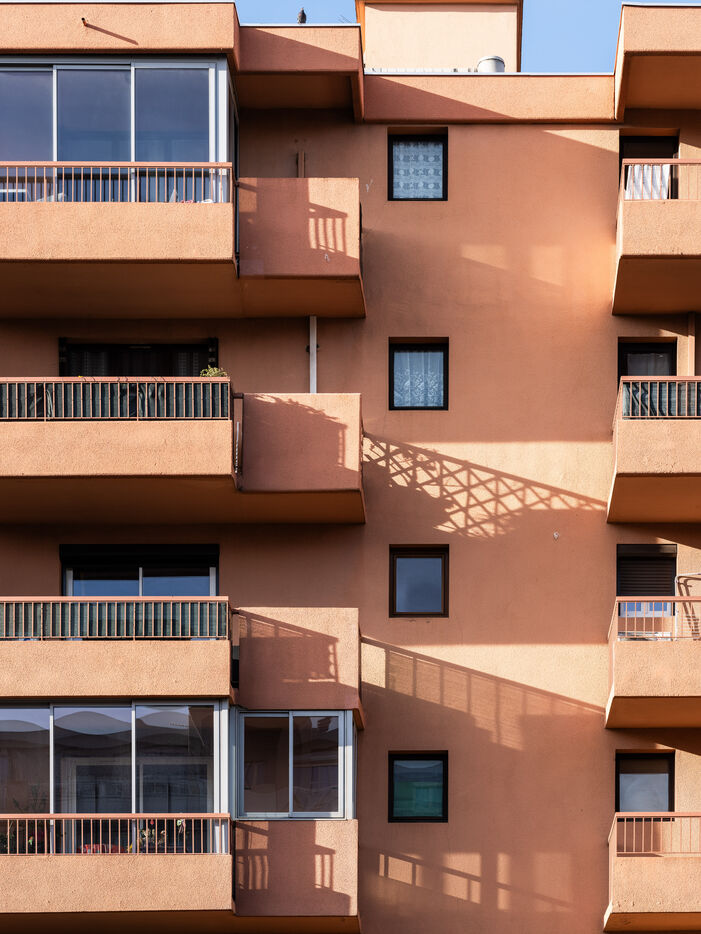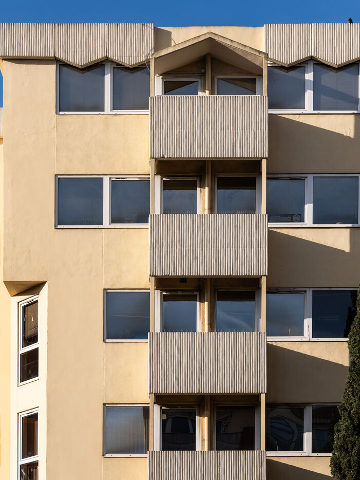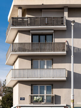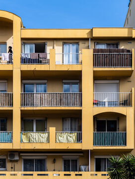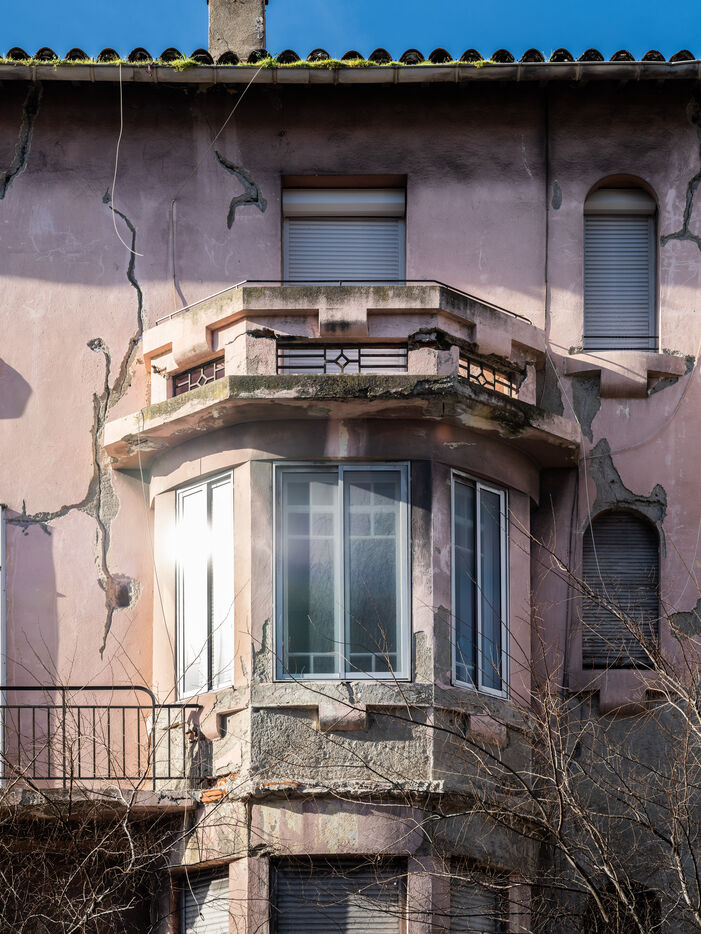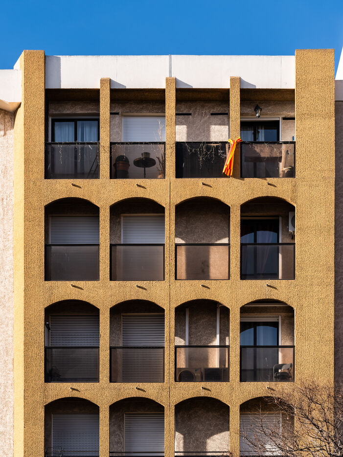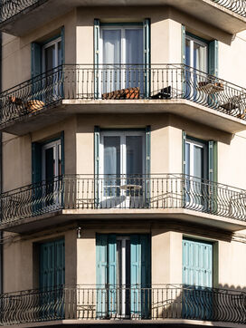 Perpignan, February 2025, medley of building facades in the city center of a small metropolis in the south of France.