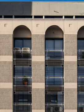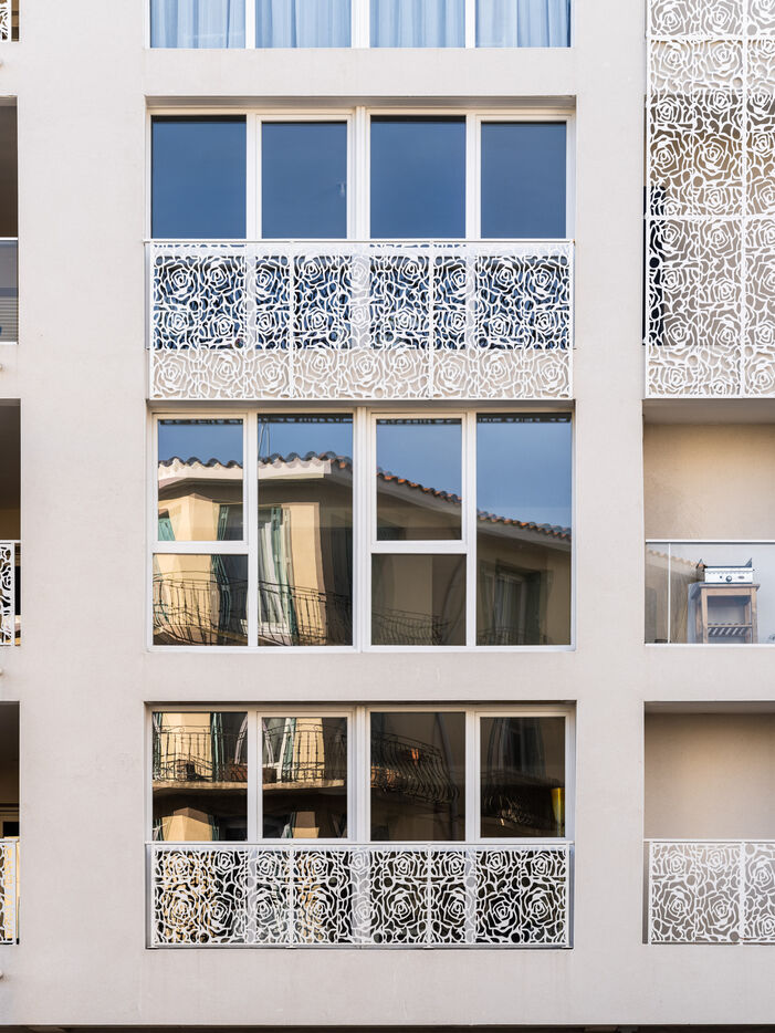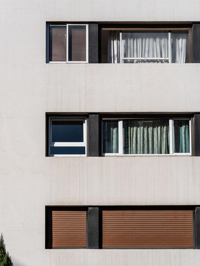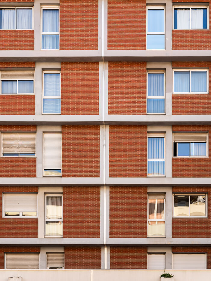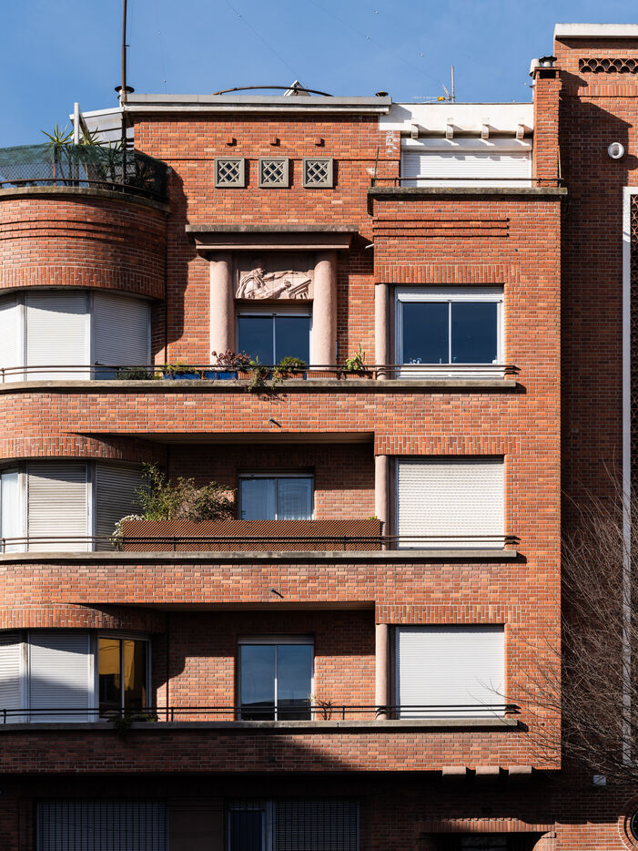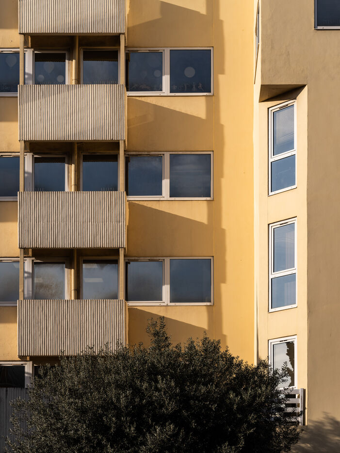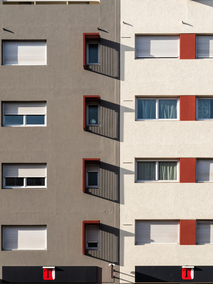 Perpignan, février 2025, medley d'image de façade d'immeuble du centre-ville d'une petite metropole du sud de la France.