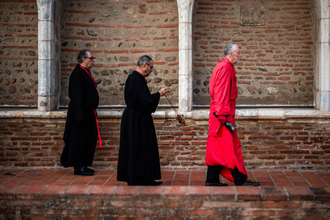 Perpignan, 16 et 18 avril 2025. Comme chaque année depuis le 15eme siècle lors du Vendredi Saint, les "pénitents" foulent les pavés de la ville de Perpignan à l'occasion de la Procession de la Sanch.