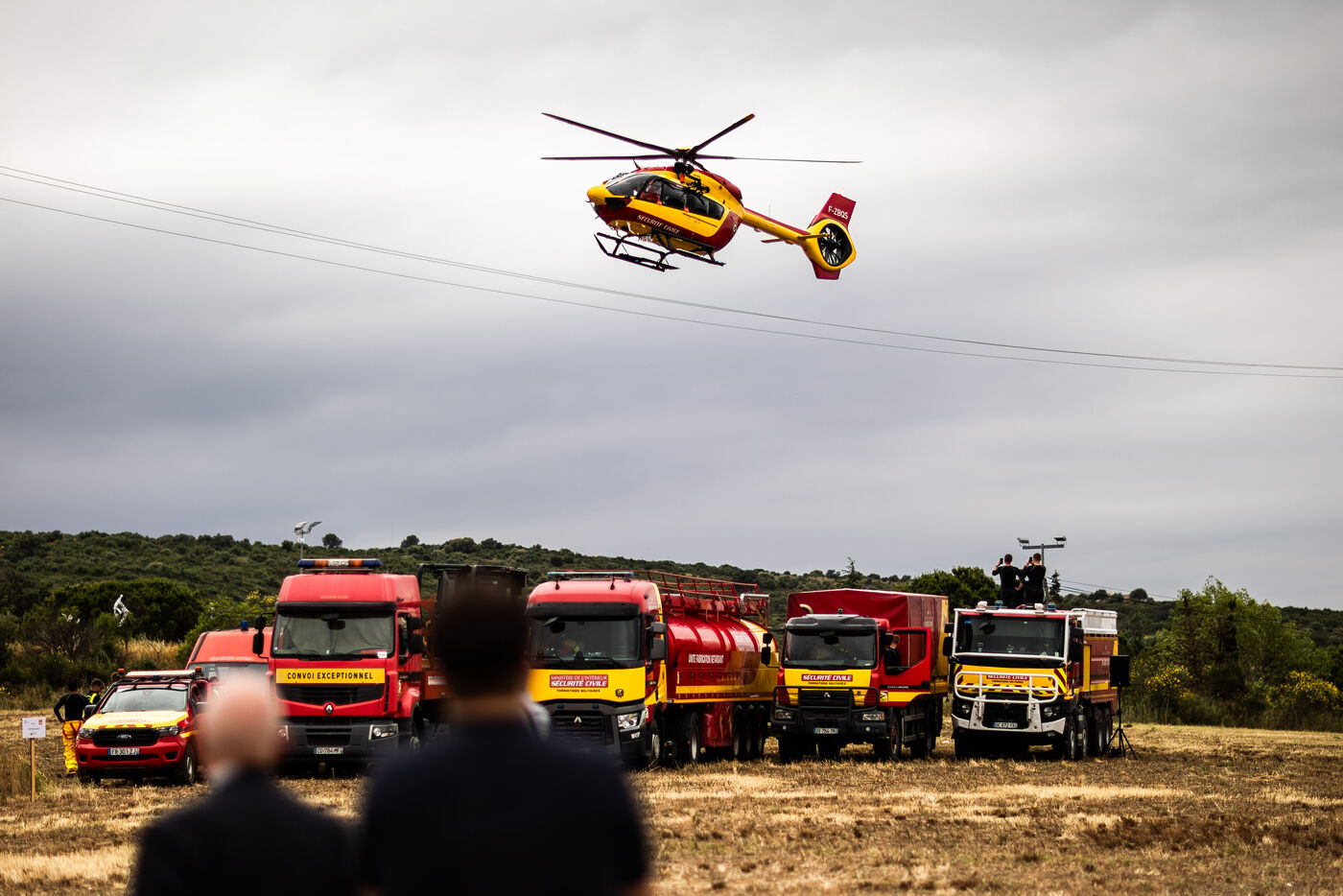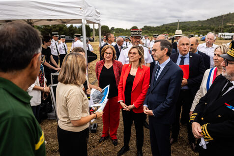 Camelas (66), June 5, 2025, as summer approaches and as part of the launch of the Stratégie nationale de défense des forêts contre les incendies, Bruno Retailleau, Minister of the Interior, and Agnès Pannier-Runacher, Minister of Ecological Transition, Biodiversity and Forestry, visited the Pyrénées-Orientales region, where they were given a demonstration of the resources deployed for the coming summer season, before meeting with DFCI (Defense de la Forêt contre les Incendies) officers from SDIS 66 (fire department) and ONF (National Forestry Commission).