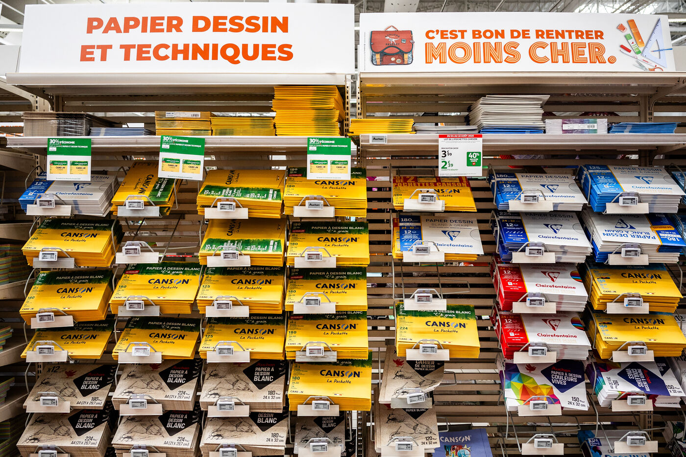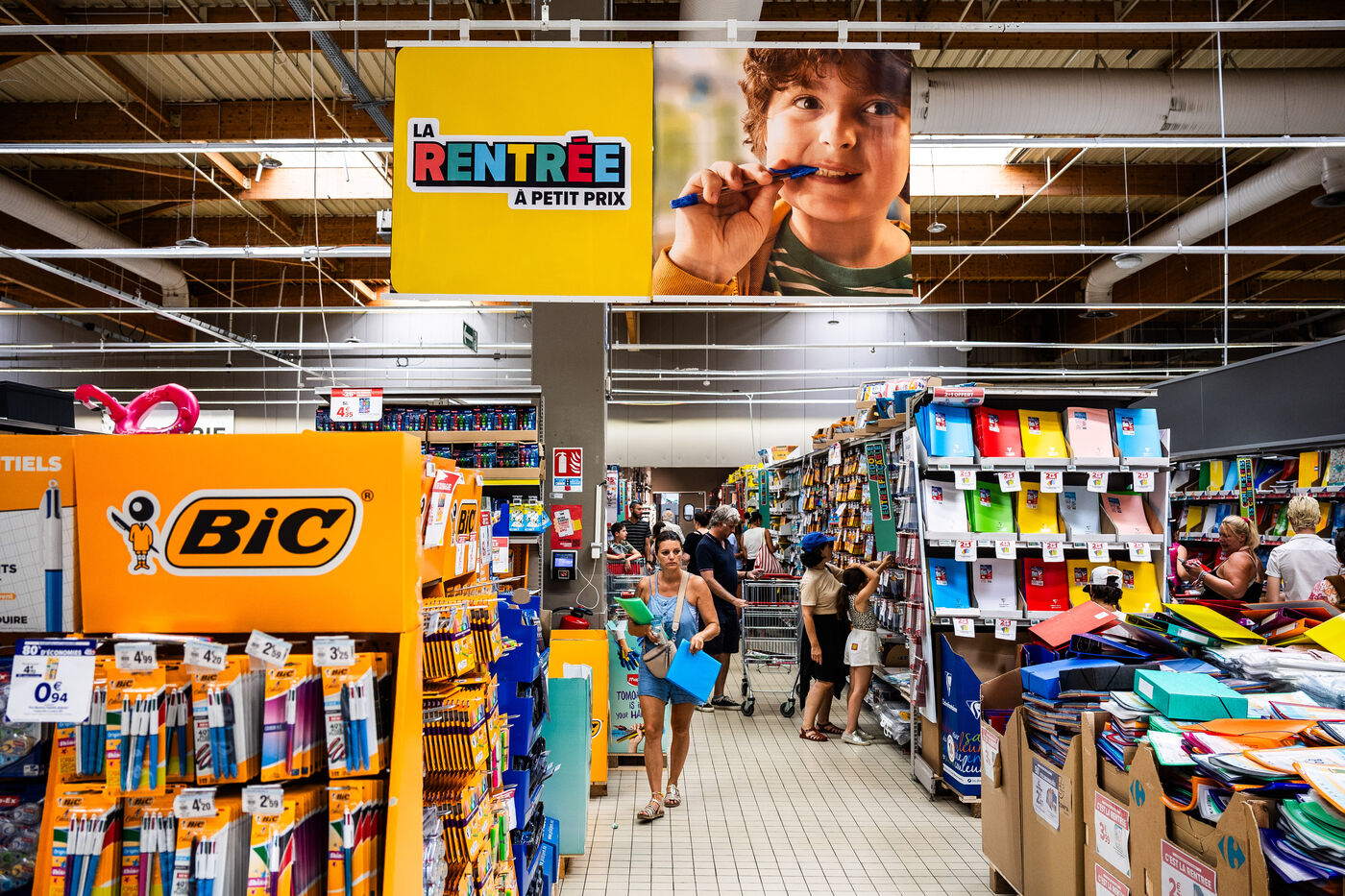 Perpignan, 20 aout 2025, a quelques jours de la rentrée scolaire 2025 pour des milliers d'écoliers, collégiens et lycéens, vient l'heure de la ruée vers les rayons de founitures scolaires des supermarchés... Est venu le temps des traditionnelles courses de la rentrée.
