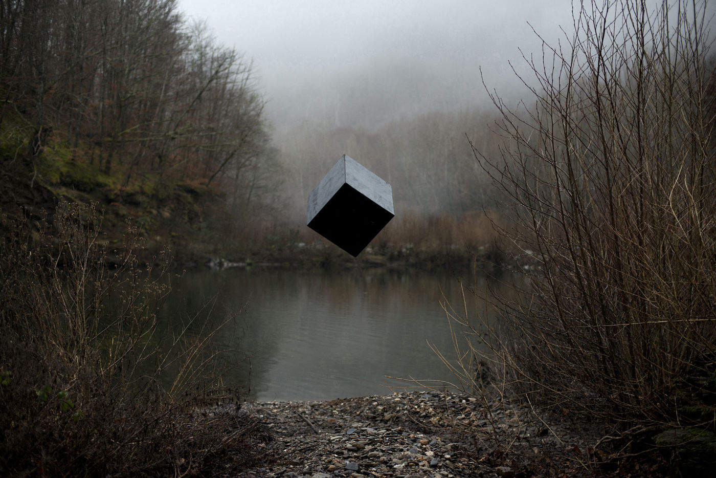 J'ai naturellement pensé au cube noir, parce qu'il m'a semblé que ce serait encore la forme la plus simple à fabriquer et puis cela renvoyait à la boite noire, la chambre noire, aussi à cette bande dessiné intitulée « la fièvre d'Urbicande » de Schuiten & Peters. J'ai procédé par tâtonnements jusqu'à opter pour une architecture en bois, légère et solide en contreplaqué, que j'ai alors conduit dans le paysage.