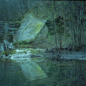 Traverser le jardin et enjamber une palissade. Descendre dans les herbes hautes jusqu'au bout du pré. Entrer dans le bois. C'est ici que commence « l'Aval ». Quelques petits kilomètres dans le travers de la forêt percée de clairières, un chemin inexistant. Alternance de pentes douces et raides. Il y a là un hameau délaissé : cinq maisons éboulées que le lierre dévore consciencieusement. Descendre jusqu'à surprendre la rivière. Un barrage. Encore quelques lacets avant de cesser de marcher. Des pas comme s’il s’agissait d’égrener le temps avec ses pieds. Alors je les ai comptés. Par petit peu. Des pas comme unité de mesure sur une carte. L’eau qui va en aval pour ne plus revenir et le mouvement lent du vent dans les arbres, un apprentissage continu des lieux. Une exploration. Pas à pas.