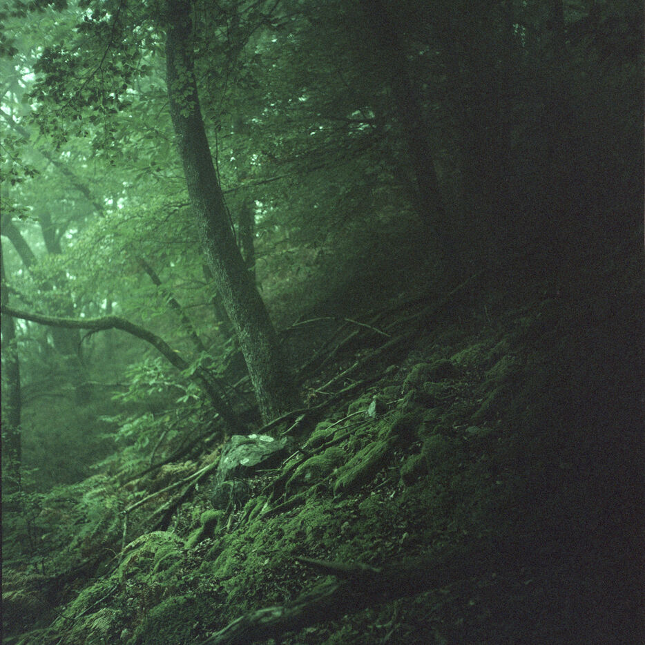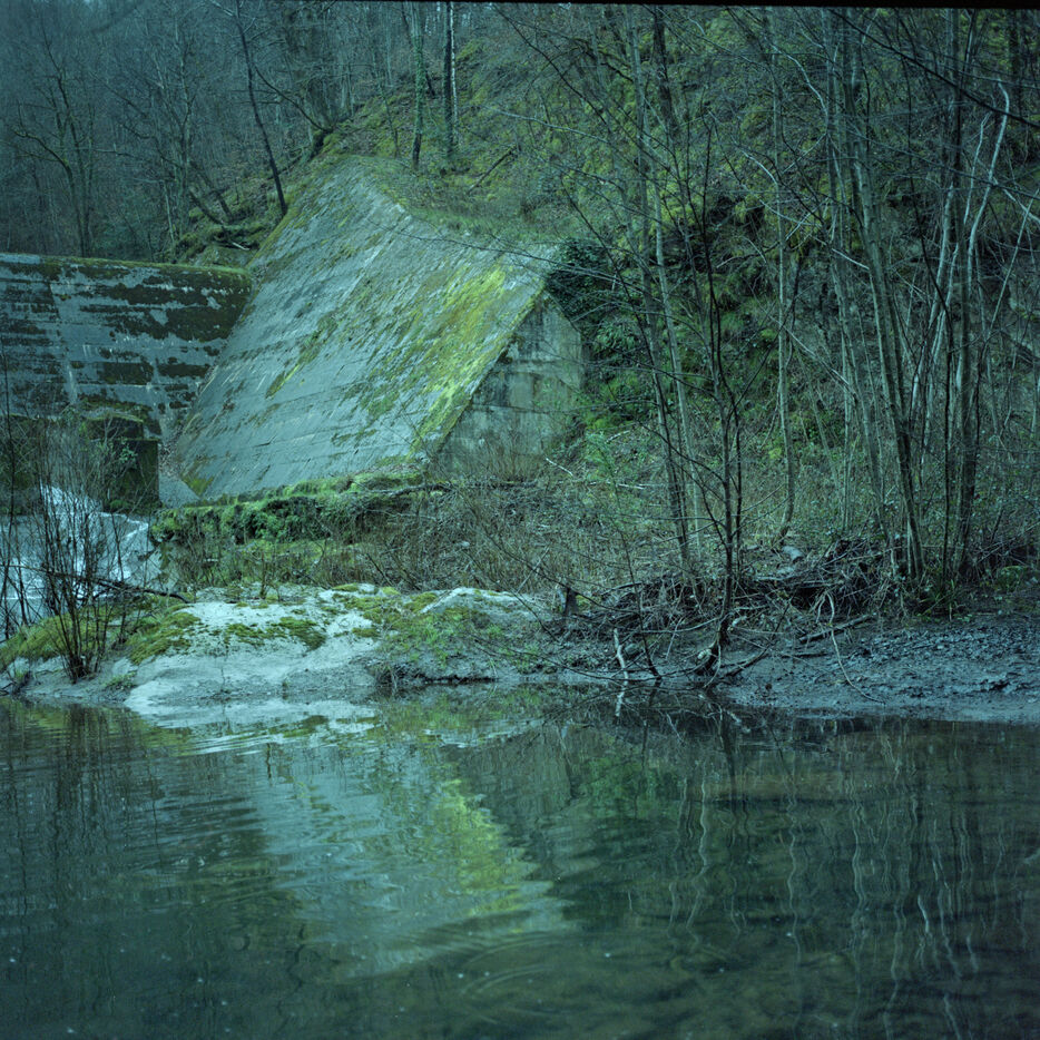 Cross the garden and climb over a fence. Go down through the tall grass to the end of the meadow. Enter the woods. This is where “L’Aval” begins. A few short kilometers across the forest pierced with clearings, a non-existent path. Alternating gentle and steep slopes. There is an abandoned hamlet there: five collapsed houses that ivy conscientiously devours. Go down until you catch sight of the river. A dam. A few more bends before you stop walking. Steps as if you were counting down time with your feet. So I counted them. Little by little. Steps as a unit of measurement on a map. The water that goes downstream and never comes back and the slow movement of the wind in the trees, a continuous learning of places. An exploration. Step by step.