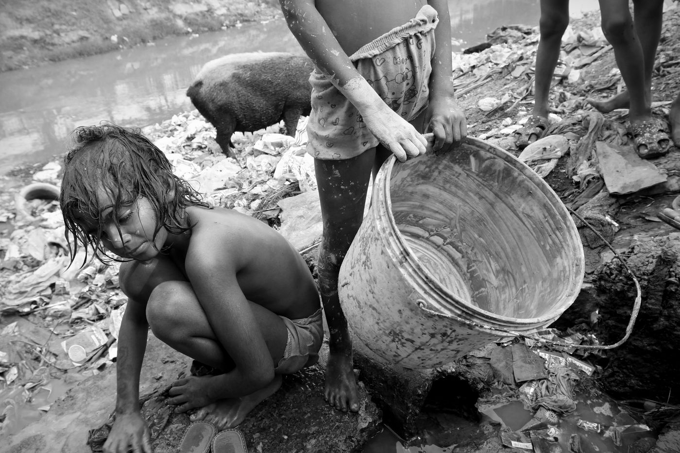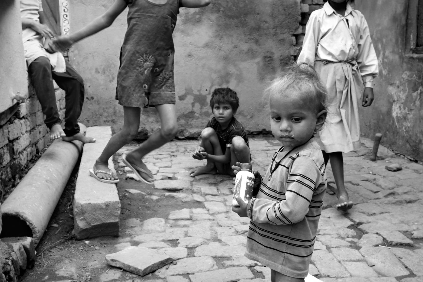 L'enfance est le monde de l'innocence par excellence. L'expression de la joie de vivre se lit parfois sur les visages au travers de plaisirs simples, et fait aussi bien partie de la vie que le désespoir et la tristesse engendrés par de pénibles situations. Certains vont même à l?école et s?accordent des temps de jeu avant de reprendre le labeur quotidien : Vivre et Survivre.