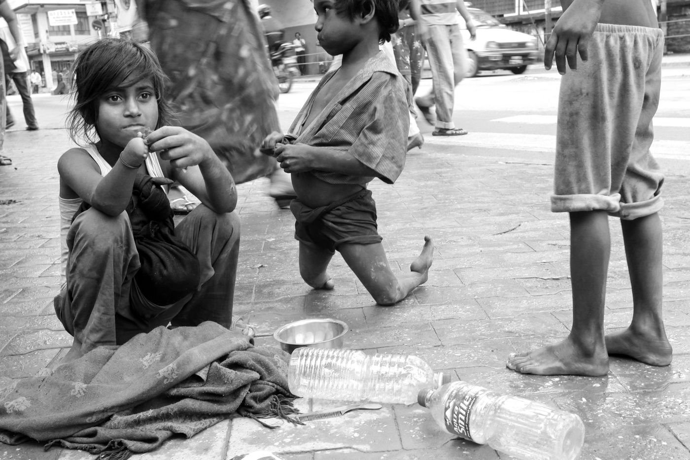 Mal nourris, mal soignés, le quotidien des plus pauvres est fait de petits boulots, de débrouille, d'ennui ou encore de mendicité. Dans la majorité des cas, il n'y a pas de solutions, pas de portes de sortie, encore moins de système protecteur permettant, à moyen ou long terme, une possible amélioration de leur condition ou changement dans leur situation. Certains enfants sont ainsi livrés à la rue, dès l enfance, parfois contraints, parfois mutilés.
