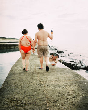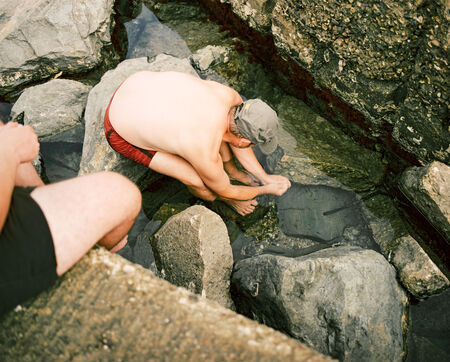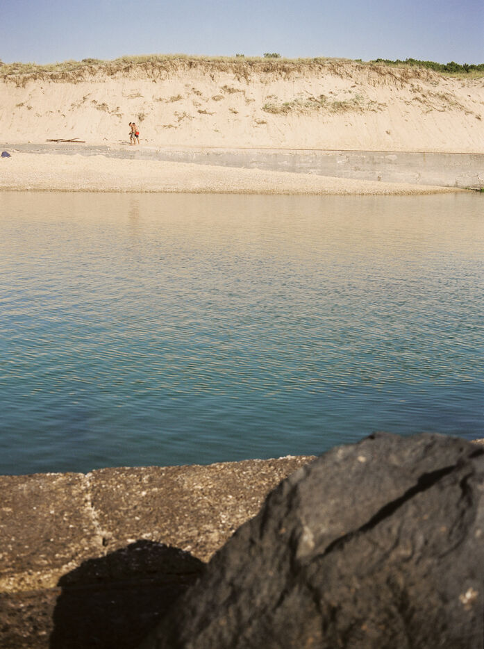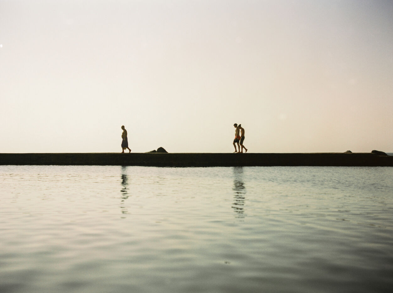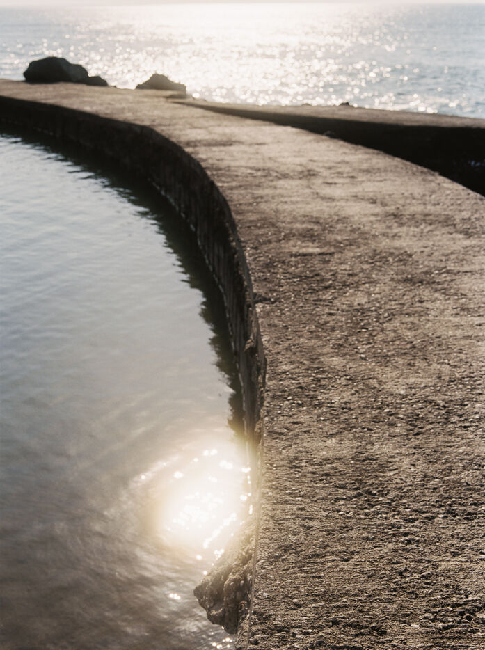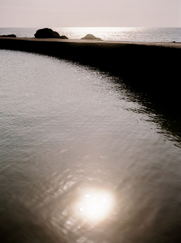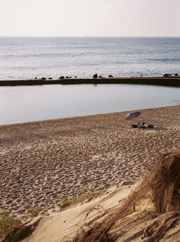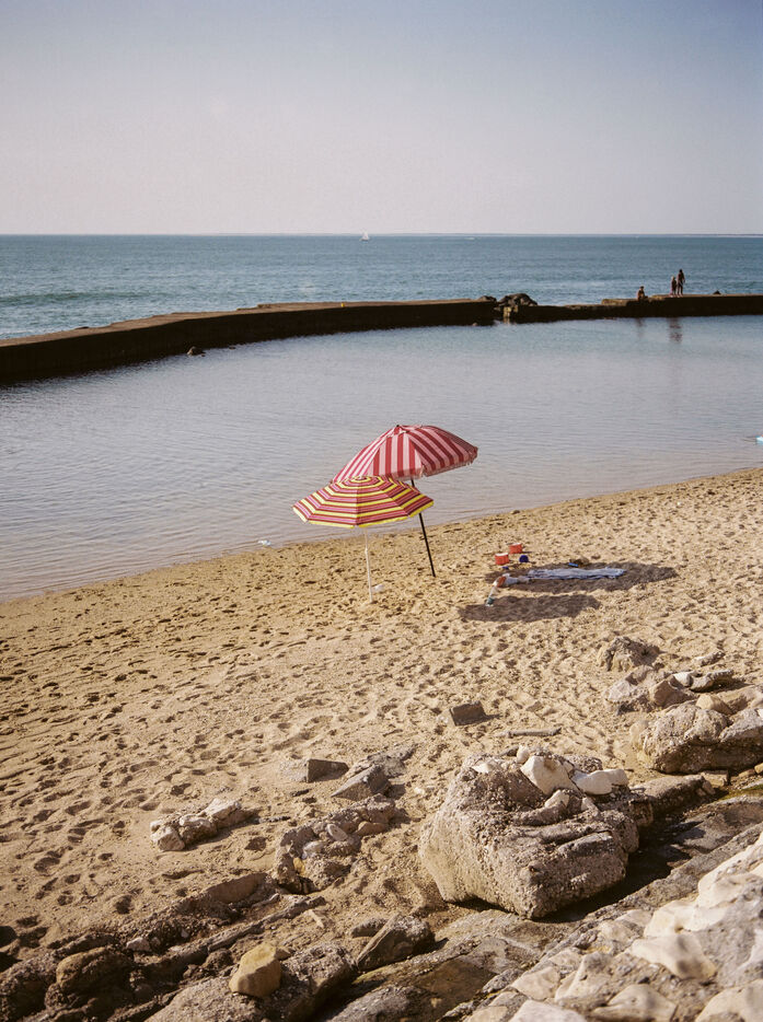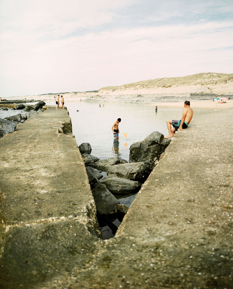 There is a beach of artificial swimming pools in Soulac, in the Médoc. Concrete constructions over fifty years old allow water to enter within them depending on the height of the tides. Beachgoers come to swim in the ocean without the risk of the waves and the moods of the tides. Others come there to fish for shrimps or crabs which come to nest among the rocks. Beachgoers then meet flaneurs and fishermen meet sunbathers.