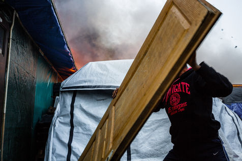 Le démantèlement et la destruction de la zone sud par les flammes ne va pas décourager ces migrants mais les faire se déplacer plus au nord du camp où il vont reconstruire leurs abris et essayer de recréer un semblant de vie.