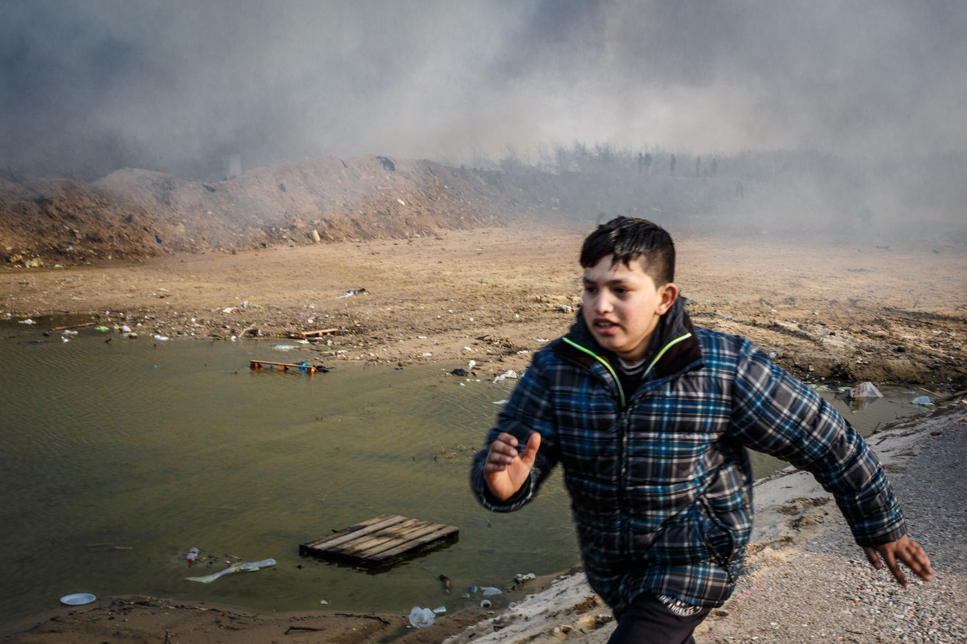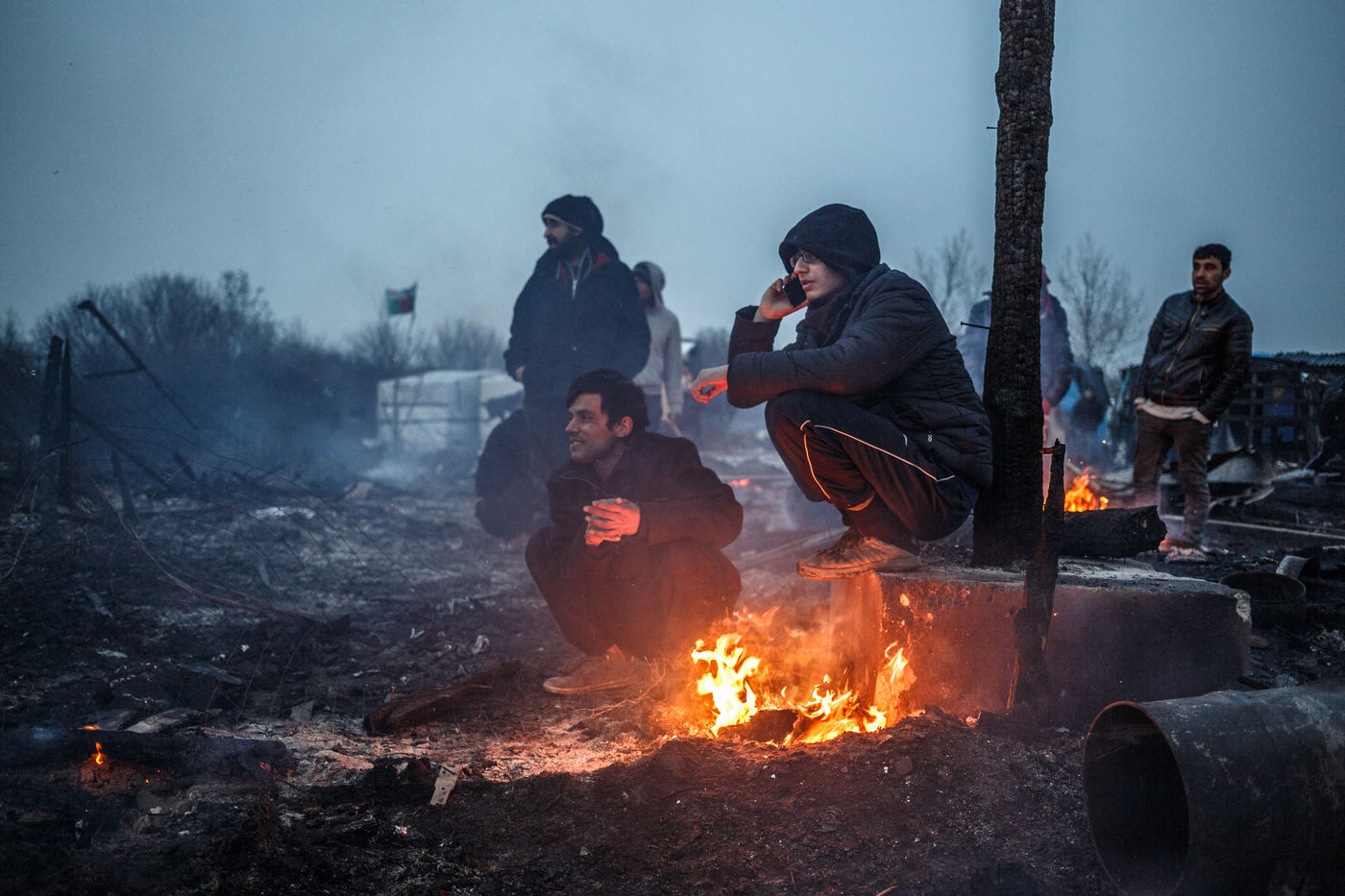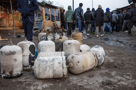 March 2016 - Dismantling the Calais jungle, the largest slum in Europe. Refugees leave their homes in the Calais jungle before they are destroyed by the authorities or the flames.