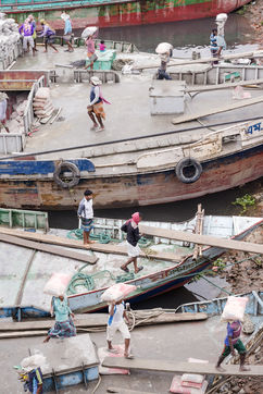 Durant la nuit, les barges sont arrivées, pleines jusqu'à la "gueule", la ligne de flottaison largement dépassée, prêtes à sombrer dans les eaux troubles du Buriganga...