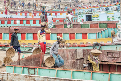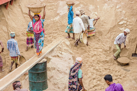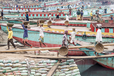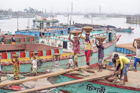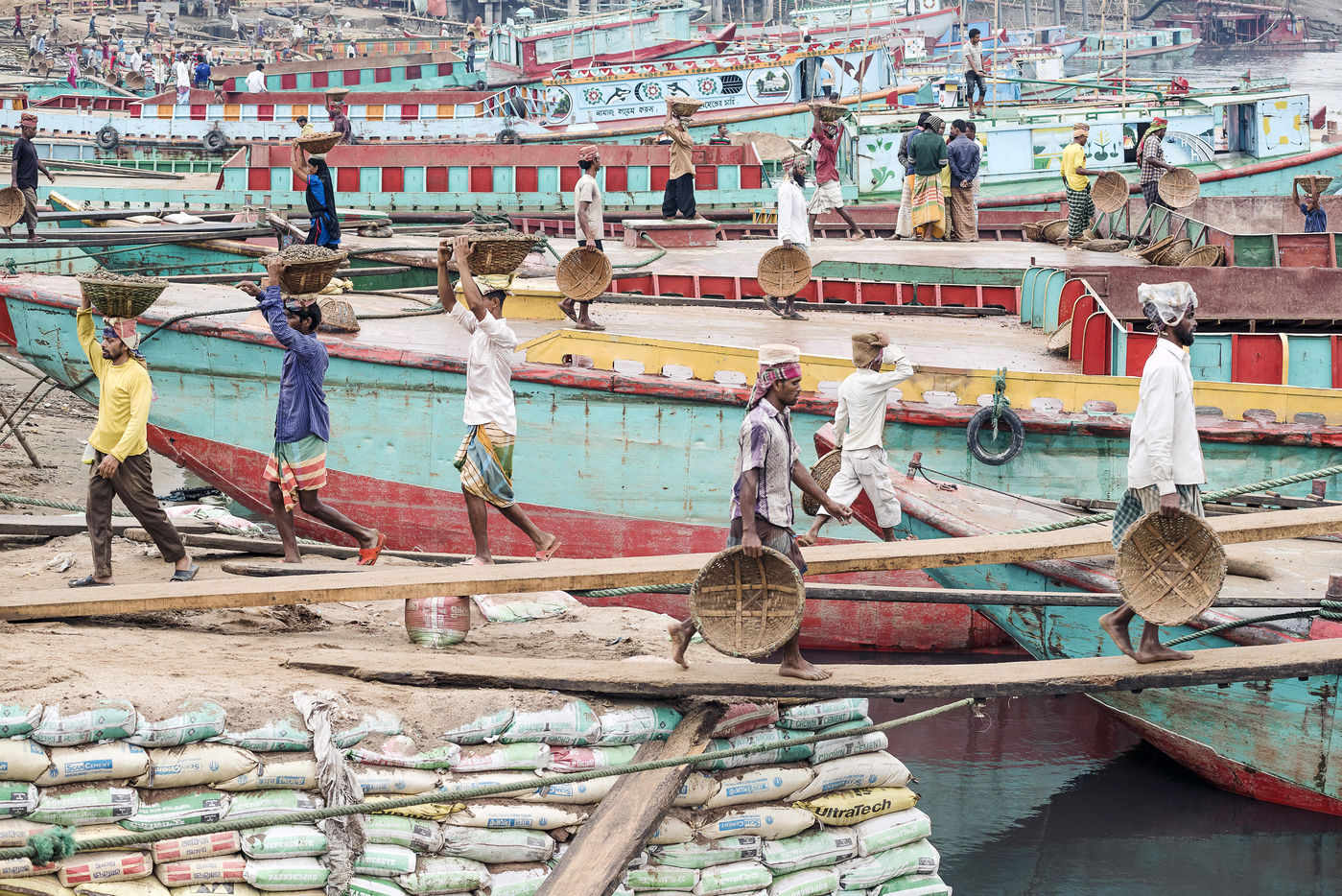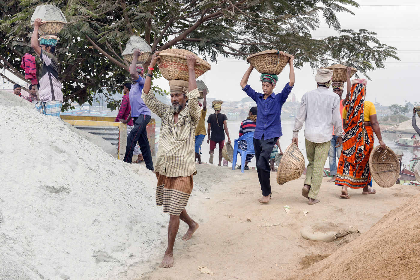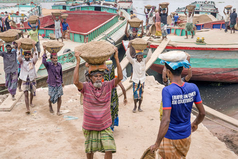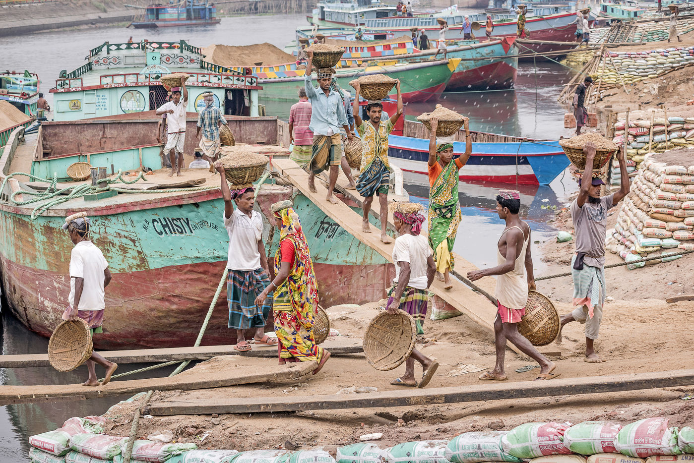 In the port of Gabtoli, on the outskirts of Dhaka, thousands of day labourers rip mountains of sand, gravel, cement, bricks and coal from the bellies of boats.