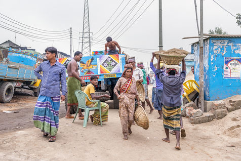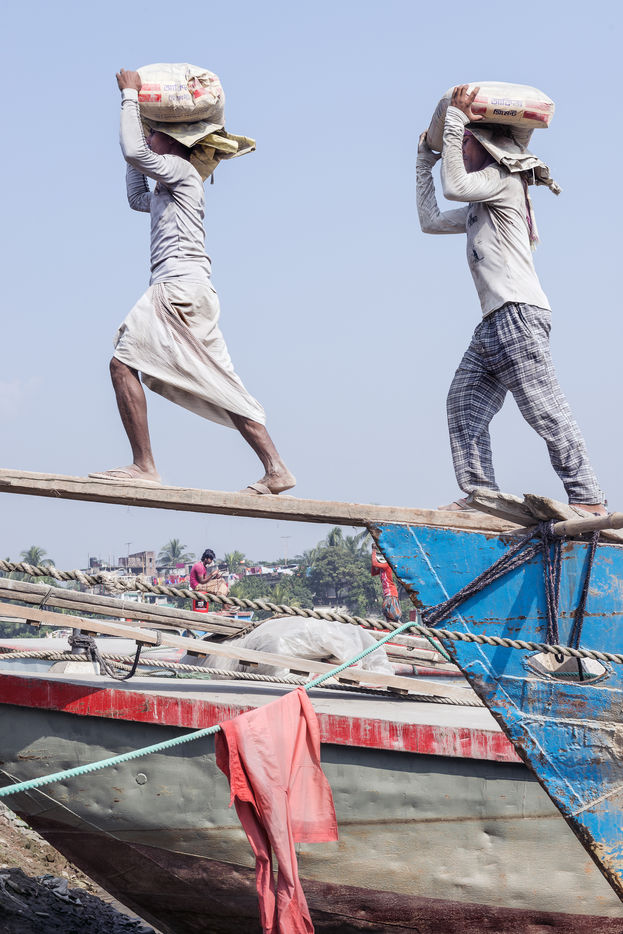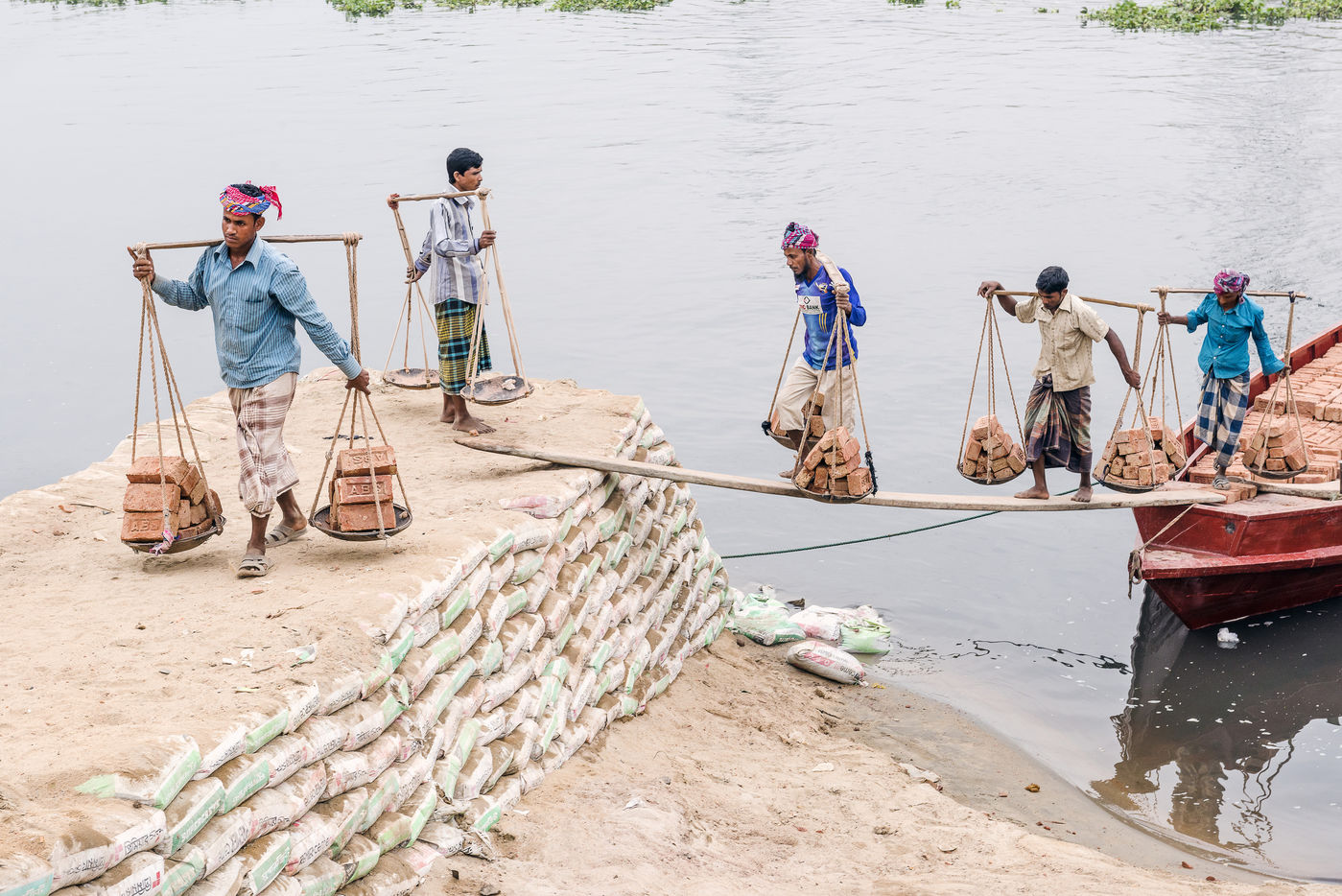 The loads weigh between 25 and 40 kg, 50 kg for cement bags. A person can thus earn between 5 and 8 Euros per day at the cost of disproportionate efforts. This income is higher than that provided by many jobs in Bangladesh, but the task is particularly tiring and sometimes dangerous.