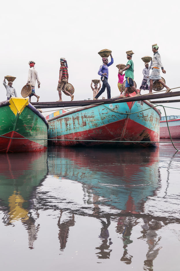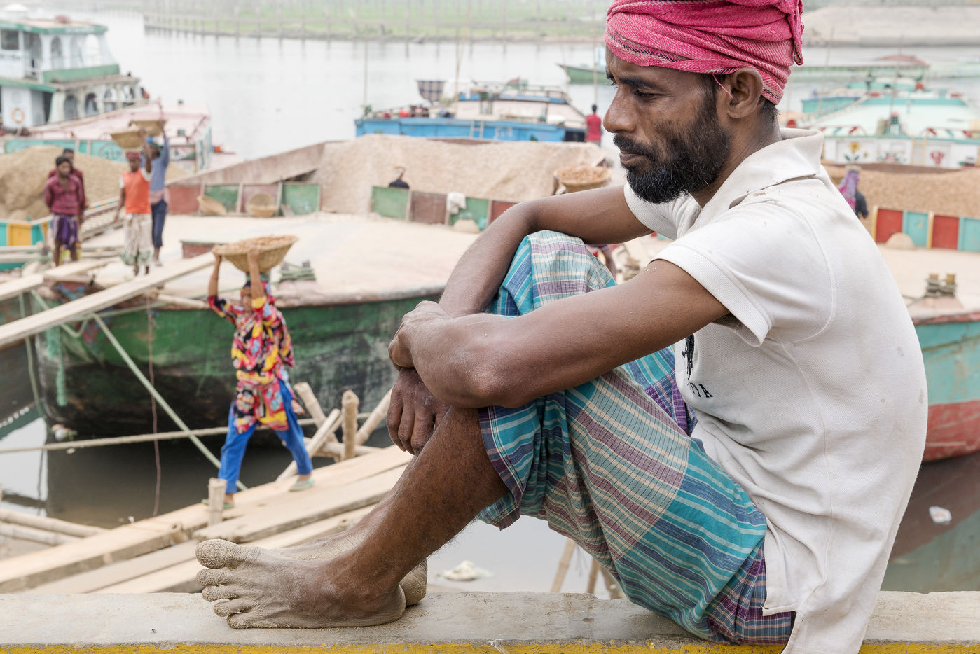 Dans le port de Gabtoli, en périphérie de Dhaka, des milliers de travailleurs journaliers arrachent aux ventres des bateaux des montagnes de sable, graviers, ciment, briques et charbon.